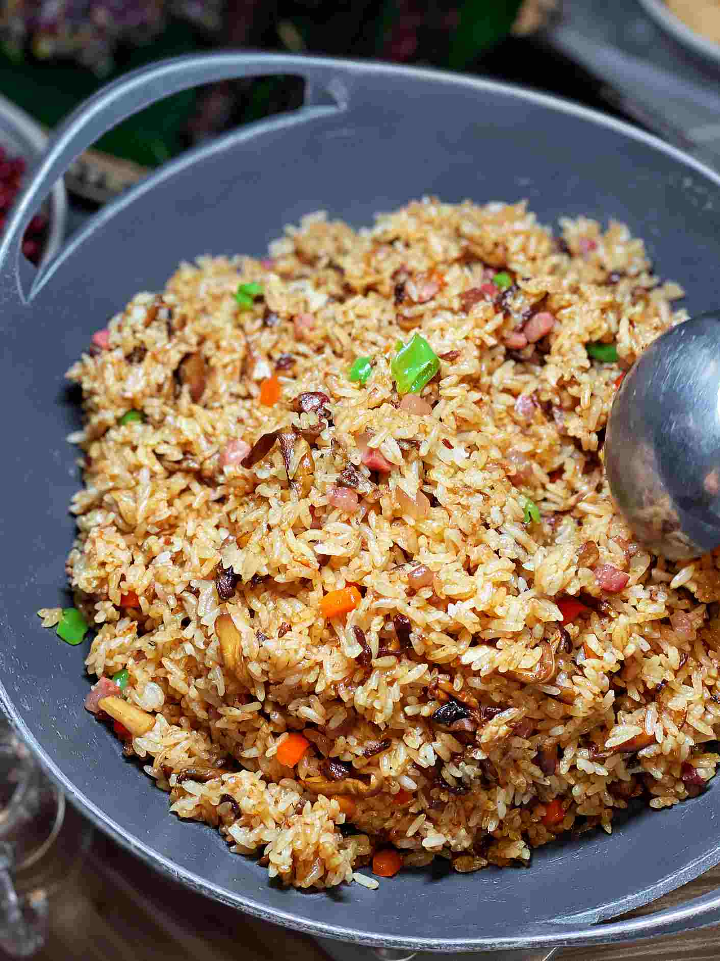 松茸干巴菌炒饭。这个炒饭有点奢侈,但是很好吃。