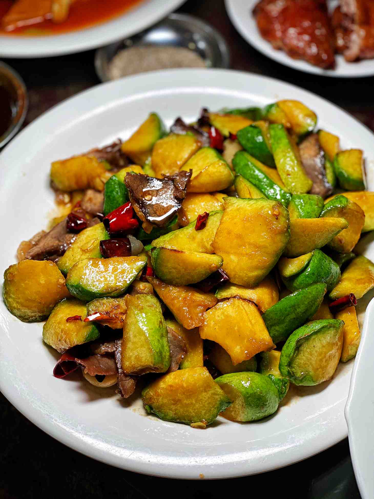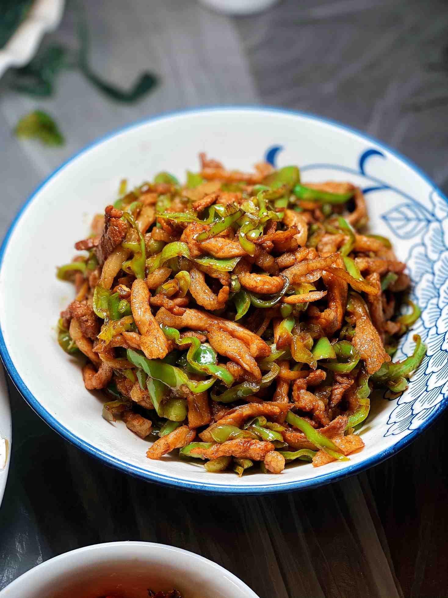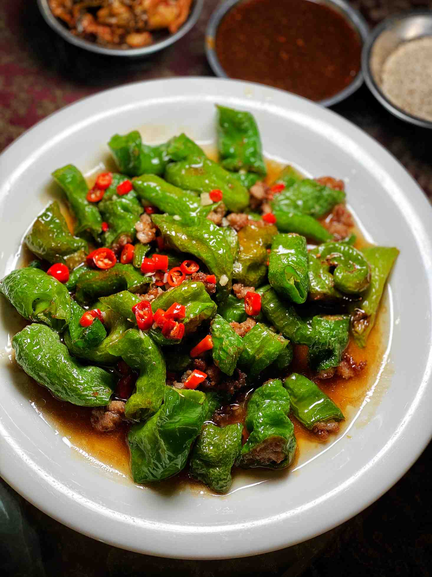 应翁总的要求加了一个皱皮椒炒肉丝,味道超赞,只是肉太多了,皱皮椒少了。
