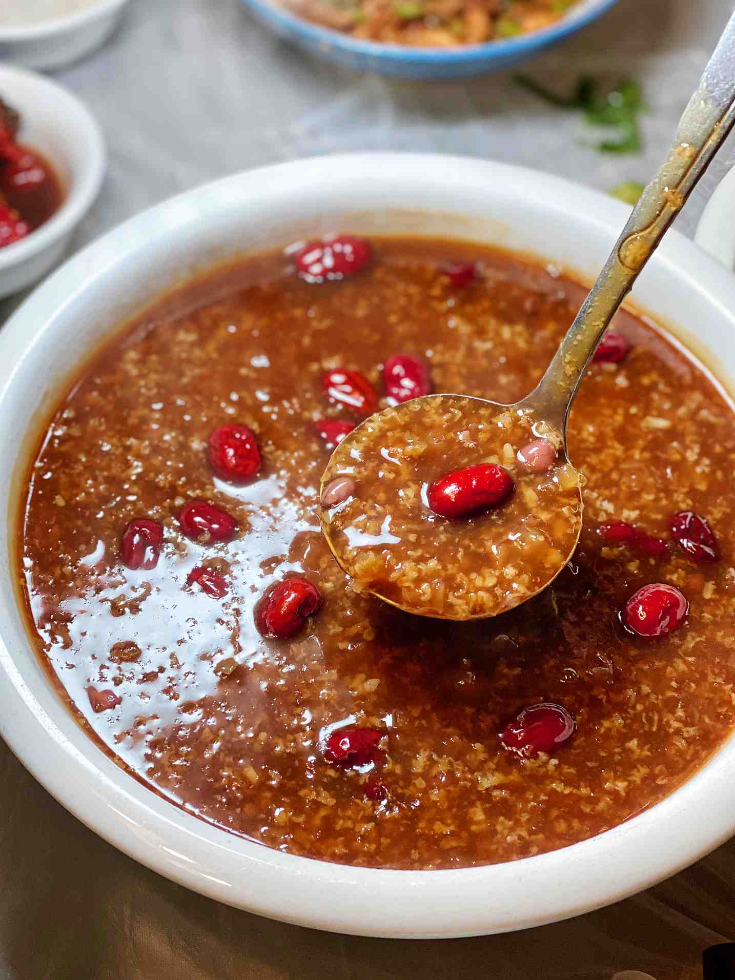帅帅极力推荐的红糖粥,听着名字我就不敢吃了。尝了两小口,还不错。