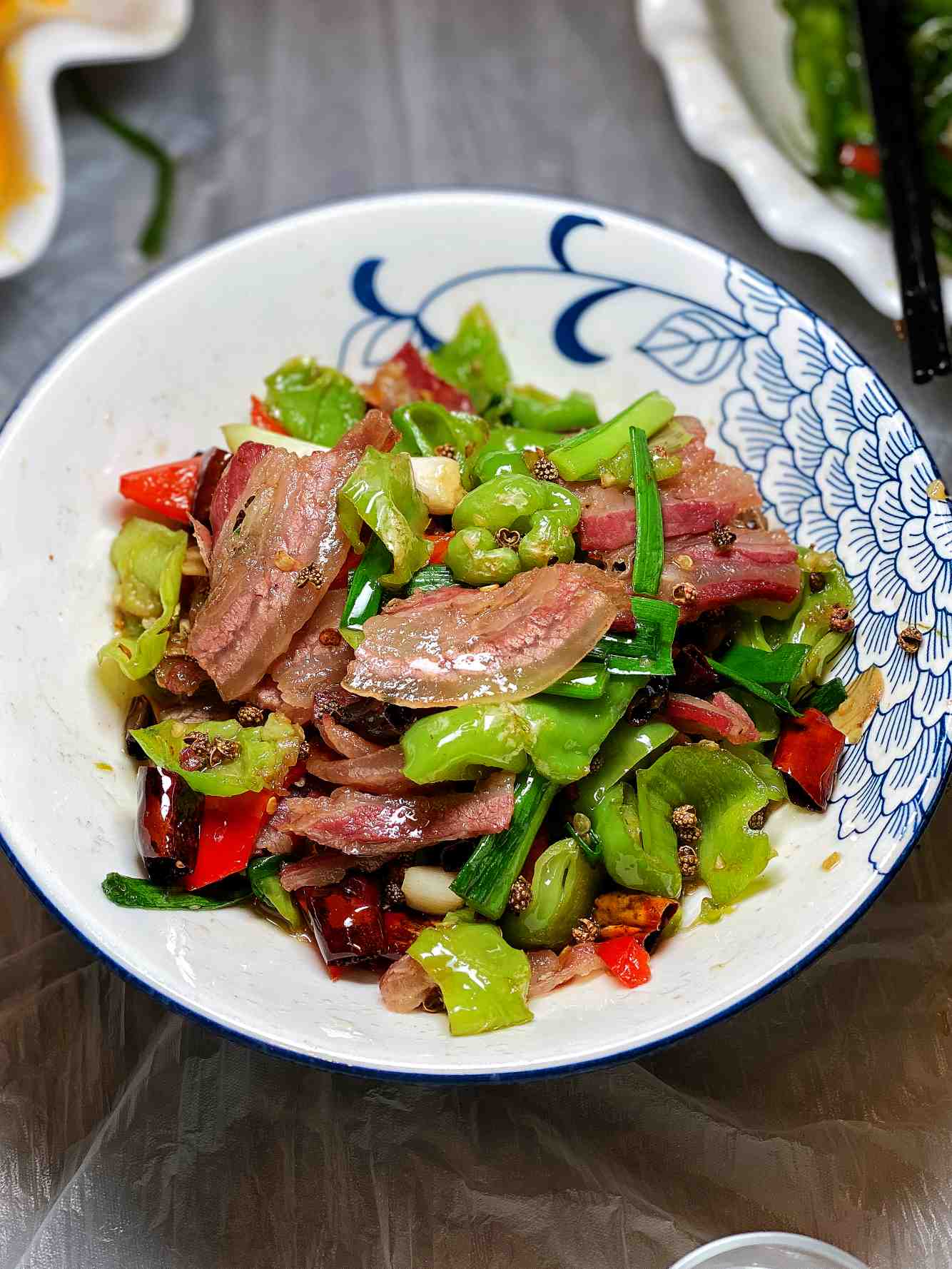 这是我要的皱皮椒炒腊肉。