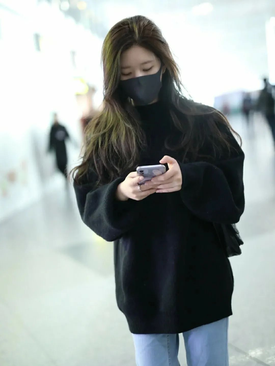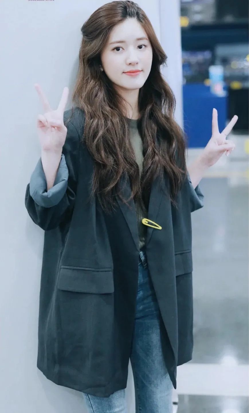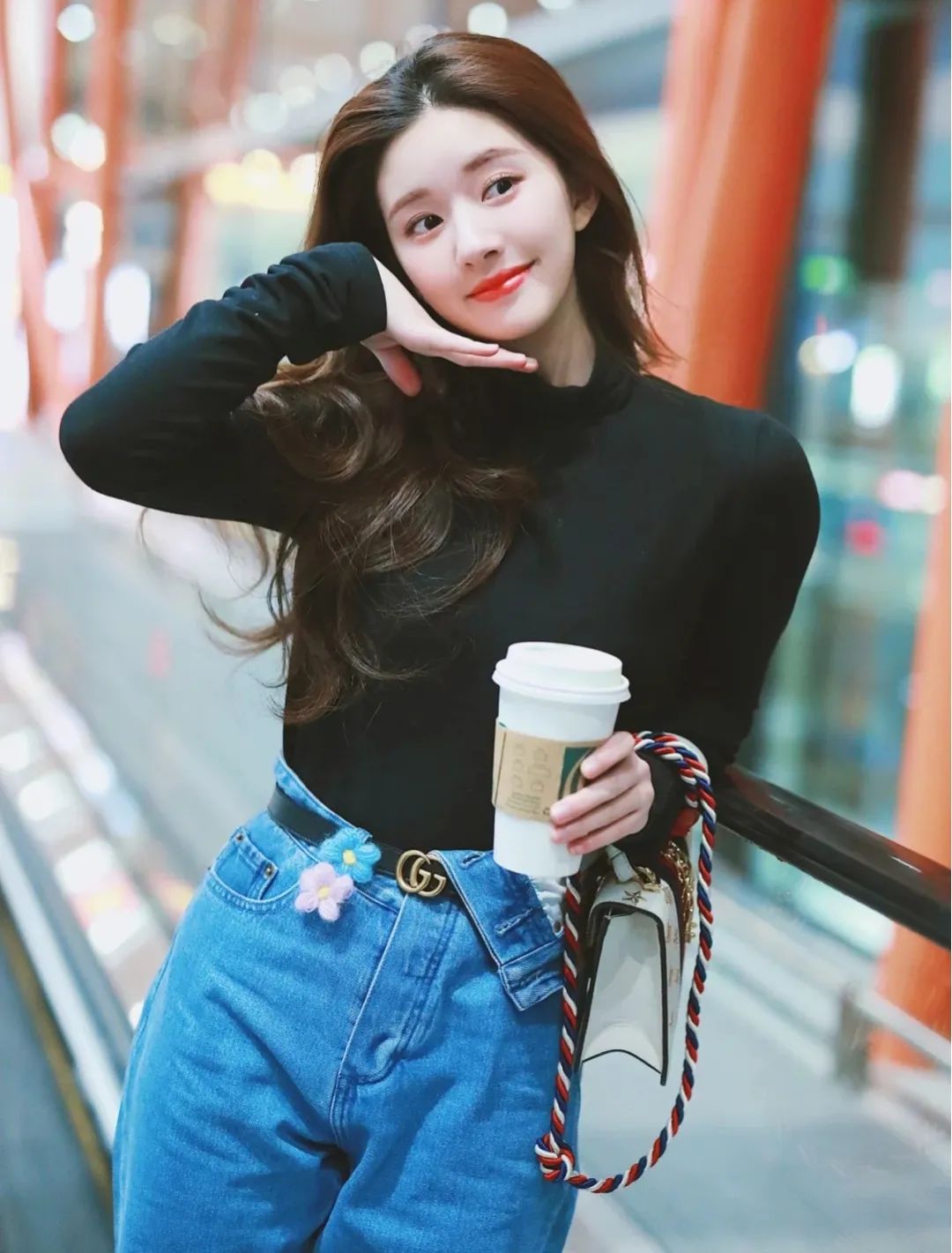 与白形成鲜明对比的黑,在赵露思身上也得到了别具一格的诠释。黑色打底衫与深蓝色高腰牛仔裤相得映彰,衬得纤腰不盈一握。oversize小西装,通勤风之余又增添了几分乖巧范儿。同样oversize的针织衫,没有过多的装饰,简简单单才是真。