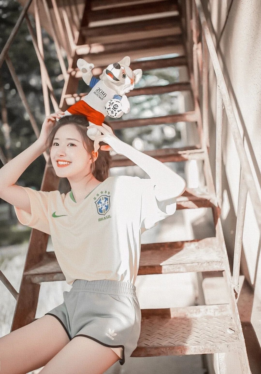 除却休闲风,赵露思的运动风也值得一品。米色短袖与灰色短裤,简单大方的浅色系,阳光下的女孩儿,笑得像个小甜心。