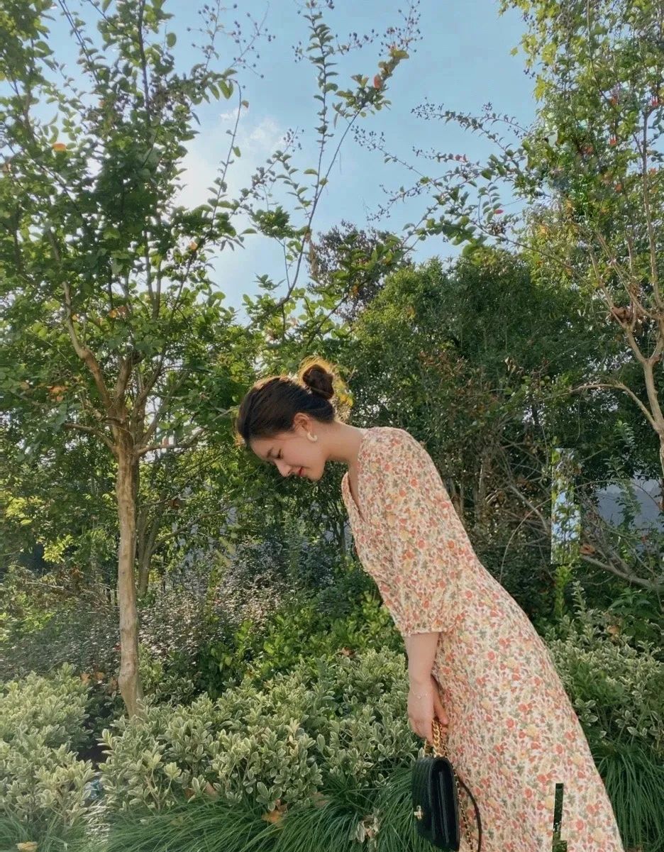 抛开千篇一律的黑白,小赵同学的亮色系穿搭堪称一绝!V领碎花小裙裙,将她修长的身段完美呈现在我们眼前,像是从画中走出来的大家闺秀。
