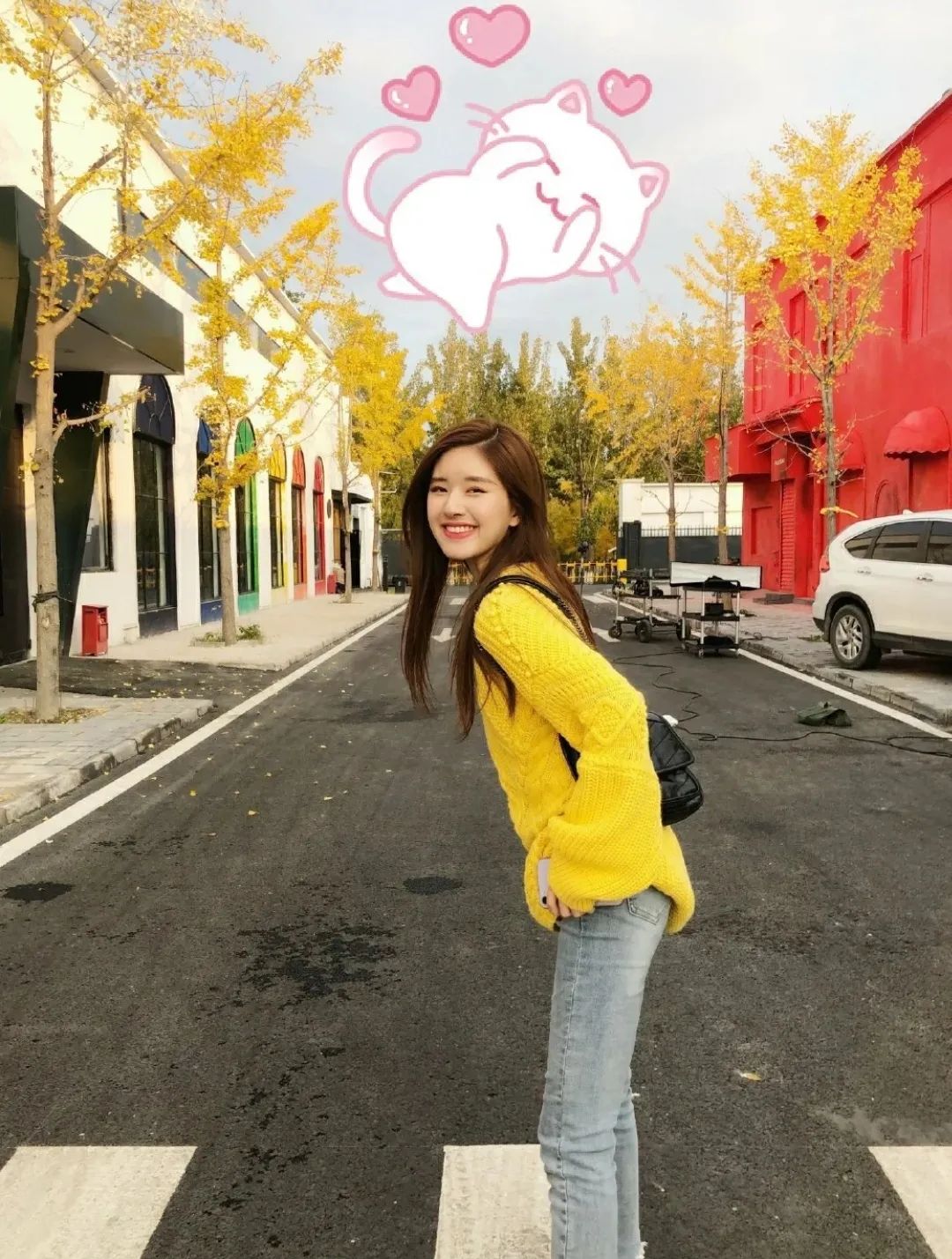 柠檬黄针织衫显白度满分,与秋日里金灿灿的银杏叶交相辉映,瞬间让人感受到秋天临近,吸睛满分。