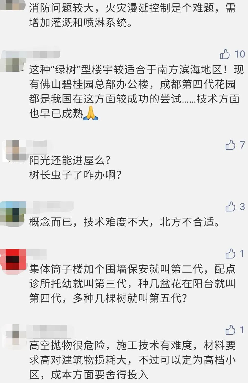 就像每次看到各种在阳台和外墙种满树的方案,我们总要条件反射似的问一句:结构怎么办?消防怎么办?蚊虫怎么办?采光怎么办?保持怎么办?安全怎么办?……