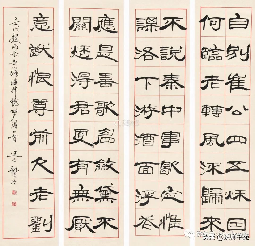 龚望隶书《赠晦叔忆梦得》四屏
