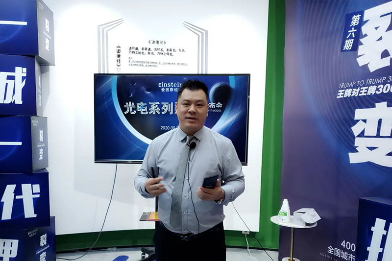 有了好产品,好营销策略,爱因斯坦瓷砖还要给全国经销商提供超级给力的帮扶政策,助力大家轻松赚大钱。随后,爱因斯坦瓷砖首席顾问鑫旺智业创始人曾回旺,就行业现状、品牌战略意义、市场推广策略三大维度出发,对“光电系列”产品上市的意义进行解析。曾老师提到,“光电系列”产品是爱因斯坦瓷砖总部打造出来的高端差异化产品,同时也是大多数用户消费得起的高端、高品质、高价位的“三高”产品。