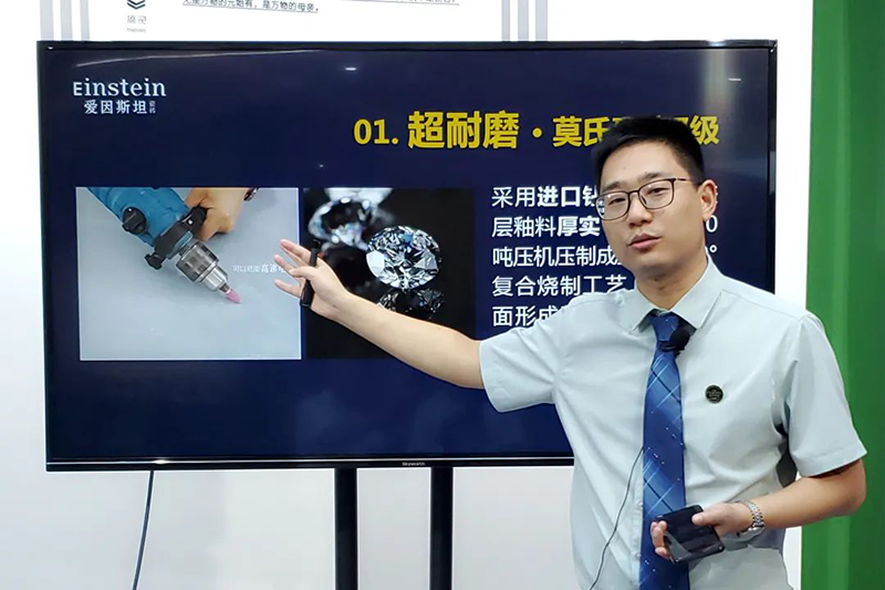 产品再好也离不开全方位营销,爱因斯坦瓷砖商学院执行院长徐方从产品优势、推广物料、营销案例、客户需求、工程案例等方面对“光电系列”产品进行全方位剖析。“光电系列”作为爱因斯坦瓷砖2020年下半年的主推产品,它集安全材料、产品工艺、功能设计于一身,赋予瓷砖超耐磨、超防滑、超易洁、超耐看、超亲肤等超实用的性能,为用户创建一个健康、舒适、极具安全感的家居生活空间。