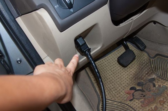 OBD系统的接口一般在方向盘下面,是一个16孔的倒梯形插口。