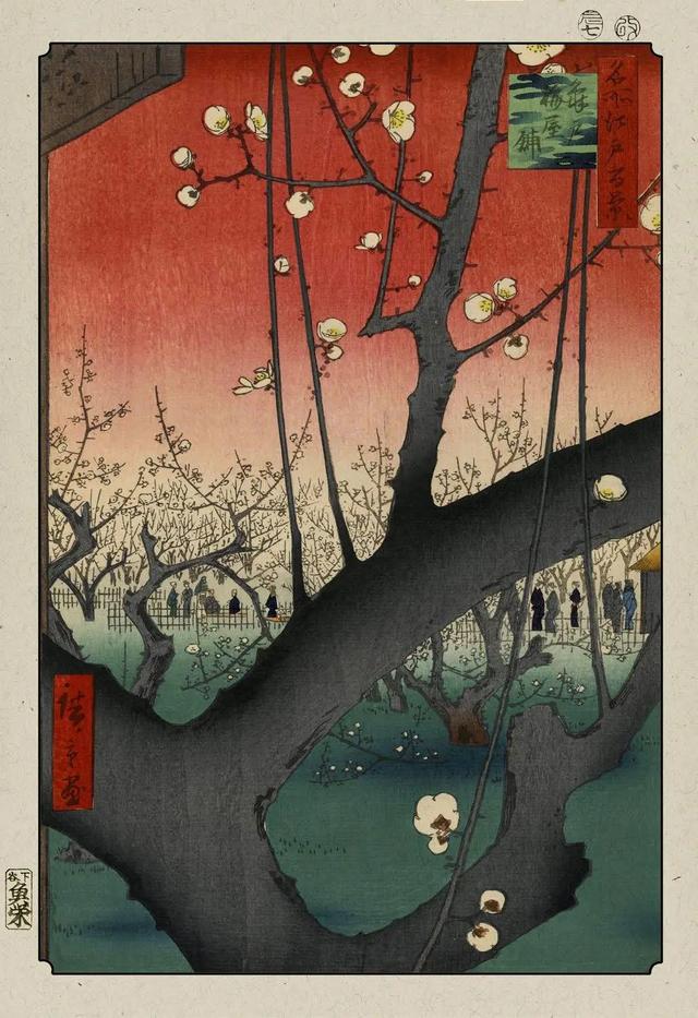 广重利用对树干色彩的渐变处理让画面有了一种版画从未有过的三维效果。