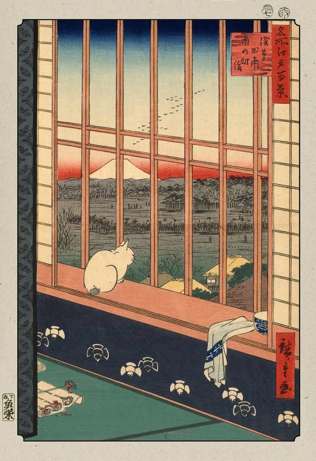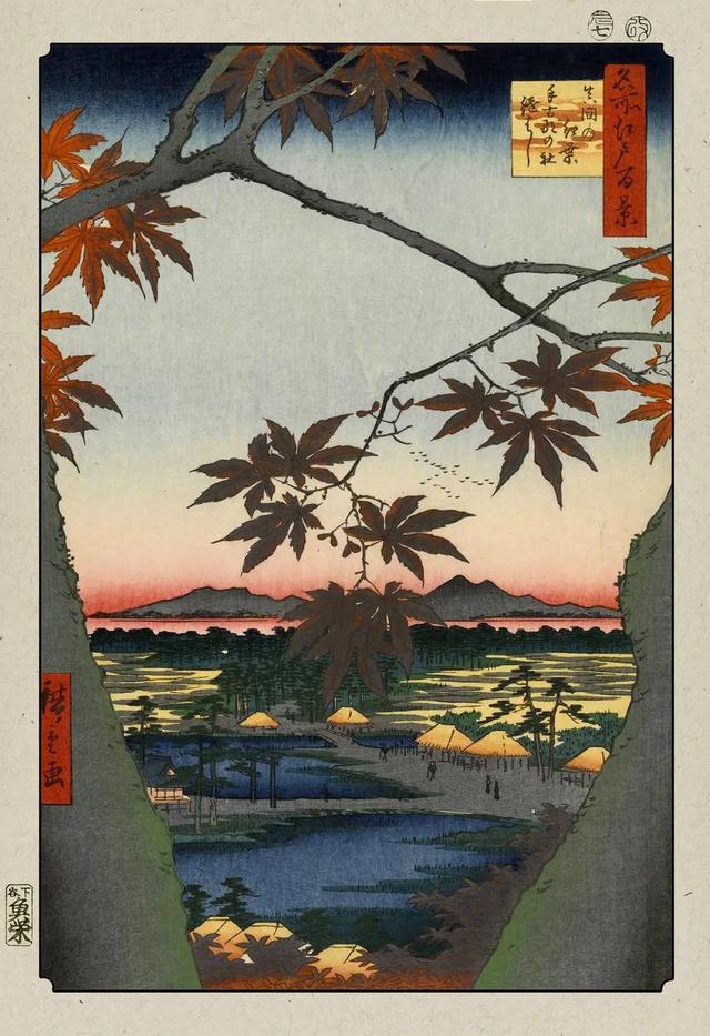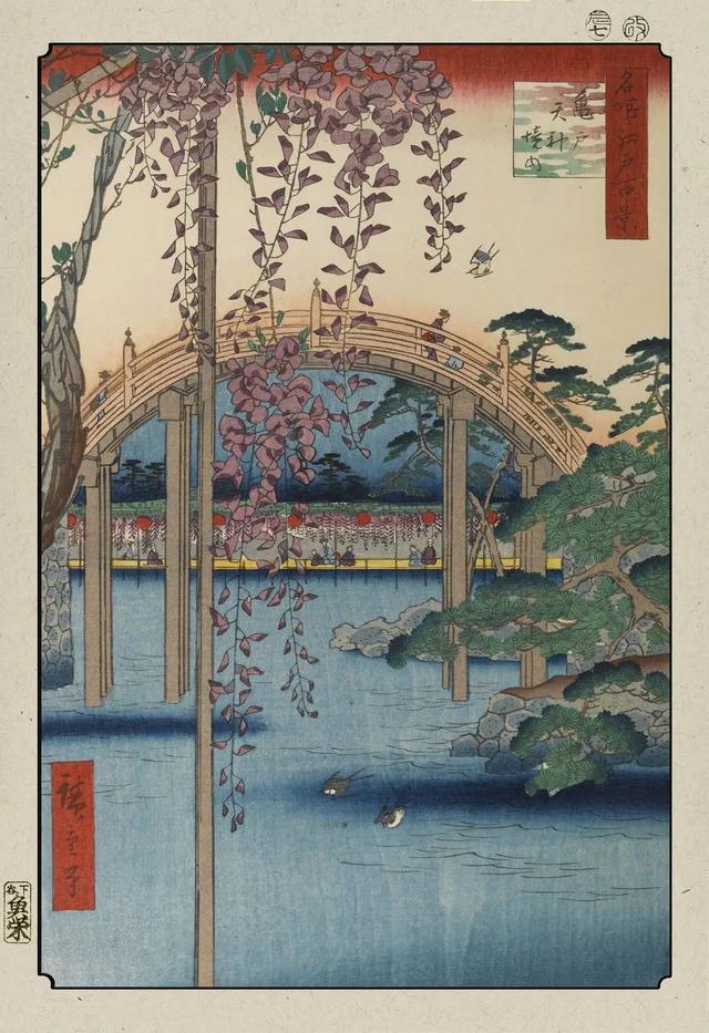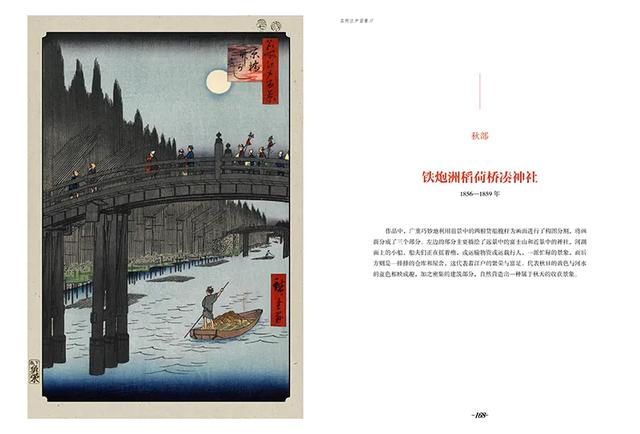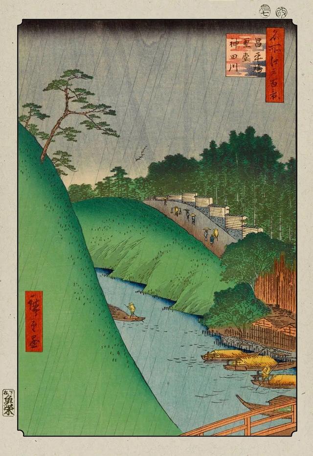 《名所江户百景》是歌川广重的代表作,许多版画家也表现过江户地区的各个有名风景,但未有一人像广重一样把对人世的情谊也添加其中。