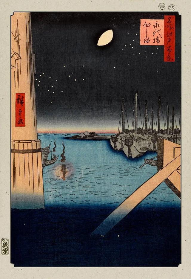 在广重描绘江户的诸多作品中,这幅版画是展现他高超构图手法的杰作之一。
