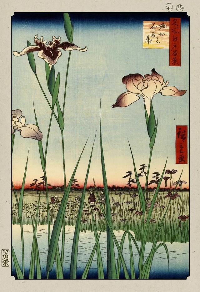 在日本,鸢尾花是美好女性的象征,而广重让其与女子们同时出现在画面中,则让观众们更加的加深两者之间的联系,为两者互相增色。
