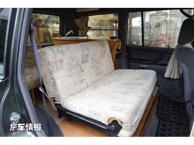 驾驶室后面有两排沙发座椅,第一排是三人座,第二排是双人座,使用的都是其它车上的座椅,只是显得较为老旧,不过坐垫很厚实,坐上去也很舒服,而且两排的空间都很大,腿能够完全伸开,长时间坐着也不会很累。