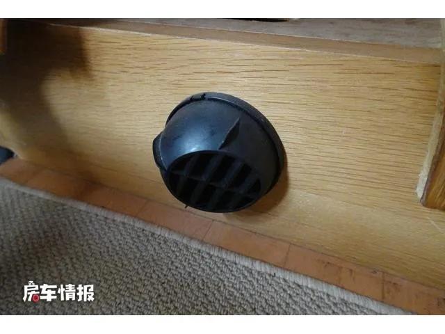 在柜子侧面有温度调节器,下面还有空调出风口,可以为车内提供适宜的温度。