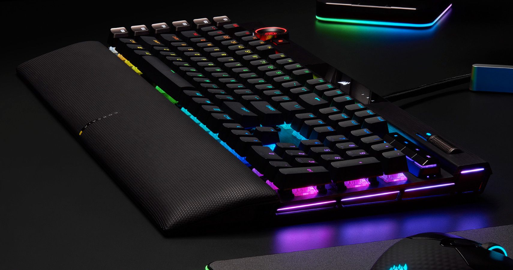 CORSAIR K100 RGB使用的全新OPX光学轴体是一款线性轴体,拥有45g触发压力,超快的1mm触发键程和3.2mm总键程。同时具备高达1.5亿次的按键寿命,而且还有更顺滑、零延迟的特性。CORSAIR K100 RGB还配备磁吸式皮革+记忆泡沫填充掌托。