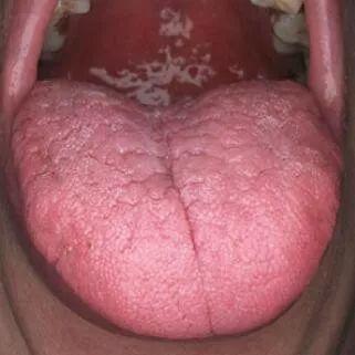 舌头有裂纹的情况,我们称之为“裂纹舌”,它和地图舌一样,都是非健康状态下的两种舌苔表现