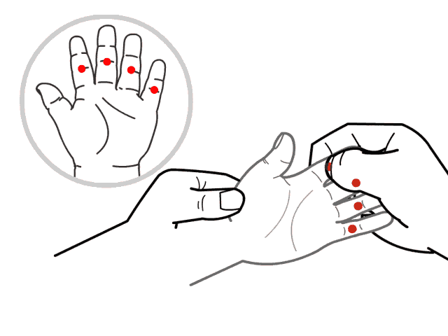 方法:直接横向搓揉四横纹,时间5~10分钟左右