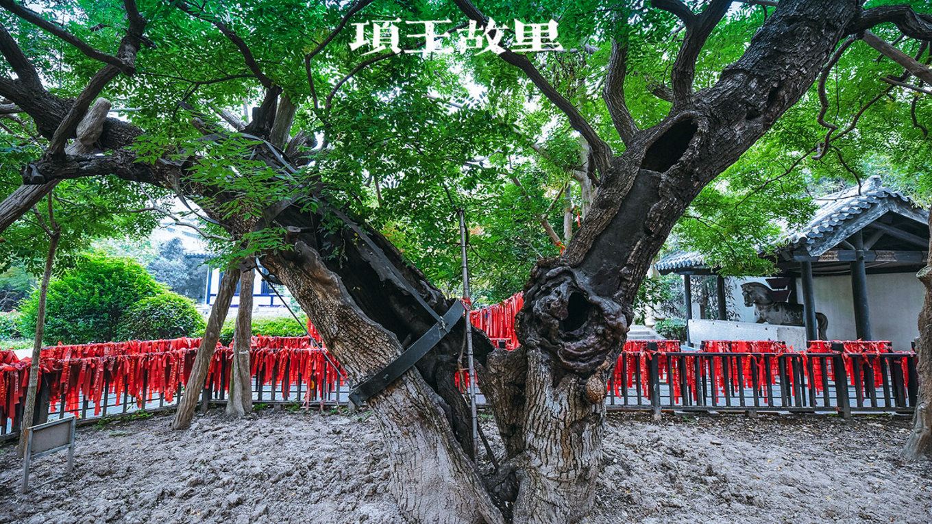 项王手植槐相传是2200多年前项羽离开家乡时亲手栽种,历经千年风雨却依然生机勃勃。据说,项羽的衣包就埋在这棵桐树下,每当老的树干即将枯萎时,从其根部又发新枝,其顽强的生命力让世人惊叹。