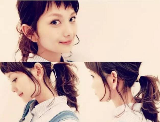 同样是马尾造型巧妙利用前面刘海卷发修颜瘦脸,提升气质。