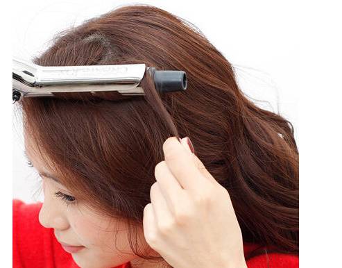 (如果原来是卷发的妹子,可以只是卷刘海的两小束头发就可以了。)