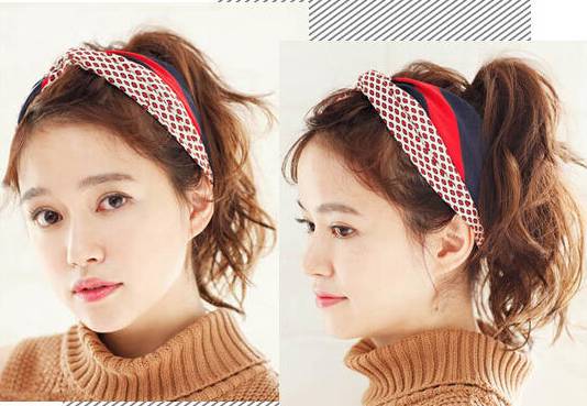 而这款马尾扎发还搭配了好看的发带给人的感觉更加的时尚。