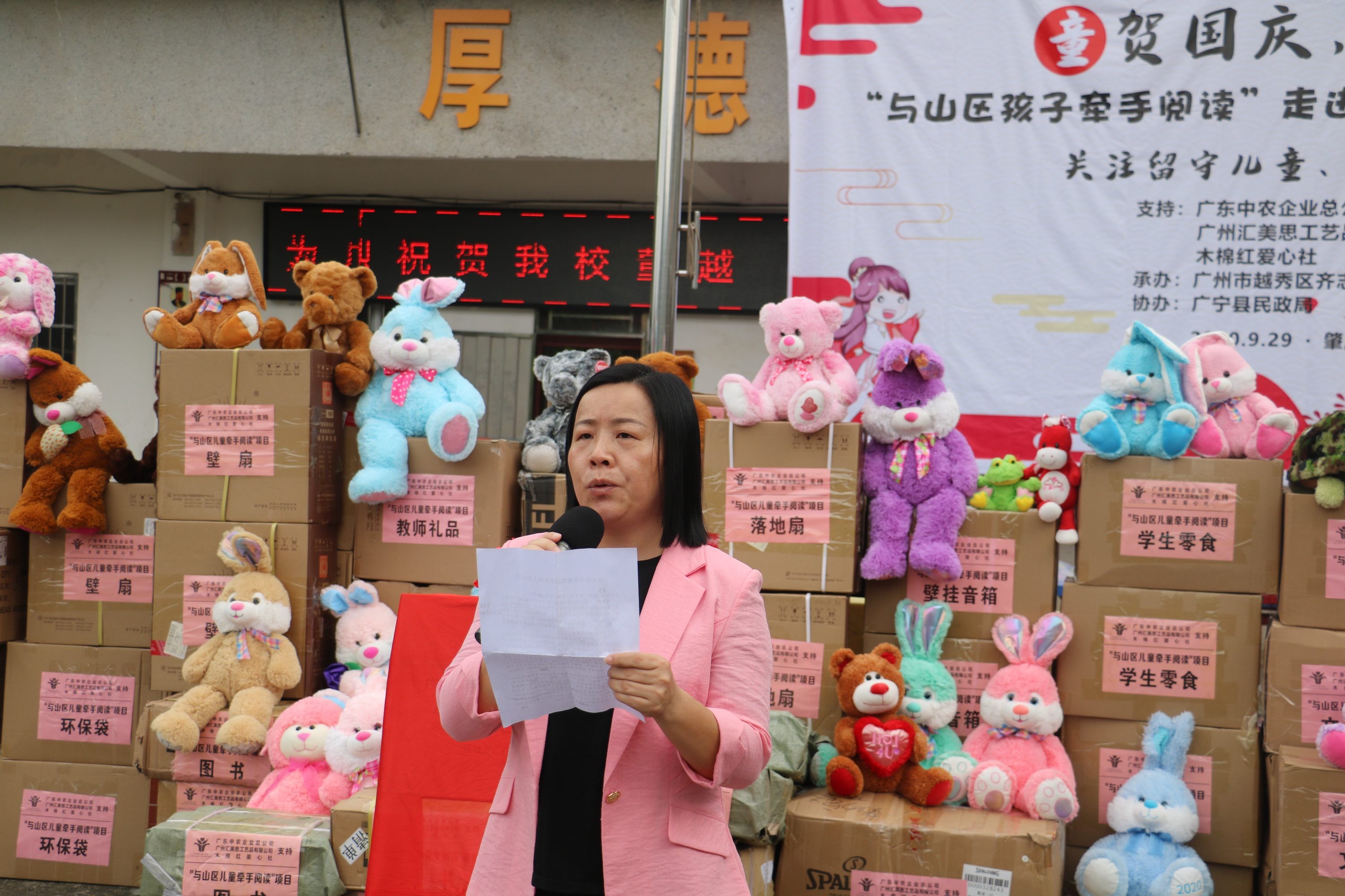 一场大型爱心活动,除了爱心企业的资助,更需要当地政府部门的支持,本次活动得到了广宁民政局的协助和支持,广宁县民政局的邓少兰副局长参加了本次的活动并致辞。邓少兰副局长说到:“我代表广宁县民政局向爱心人士表示衷心感谢,感谢广东中农企业总公司、广州汇美思工艺品有限公司、木棉红爱心社对大信小学的慷慨相助,使农村留守儿童和困境儿童感觉到了家的温暖和社会的关爱,感谢广州市越秀区齐志社会工作服务中心对这次助学活动的努力和辛勤付出。在此我再次广宁县民政局对你们的到来表示热烈欢迎,对你们的爱心行动表示衷心感谢!”。此外邓少兰副局长还勉励同学们要珍惜生活,不负全社会爱心人士的一片真诚,树立远大理想,把握人生航向,用优异的成绩回报爱心人士。