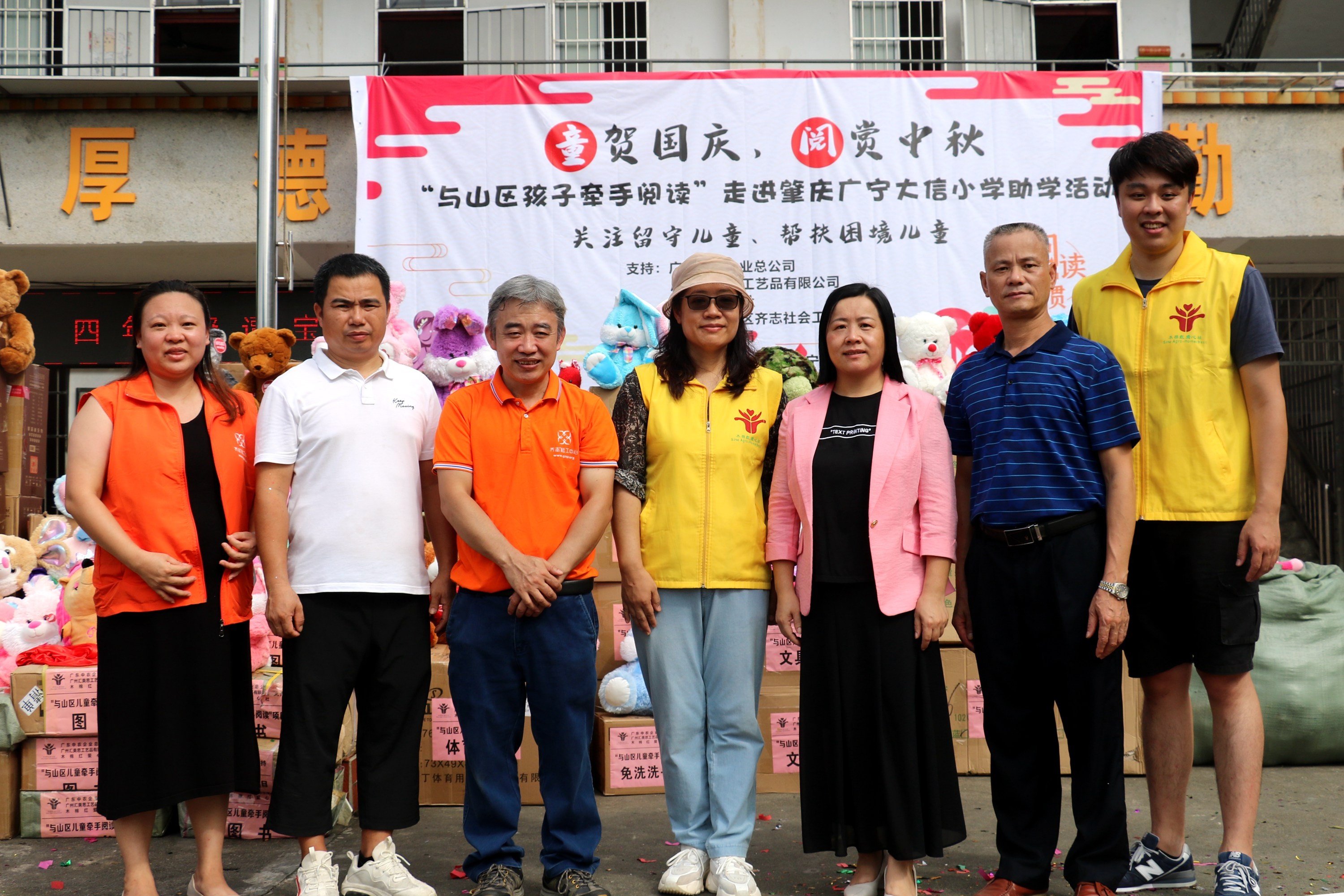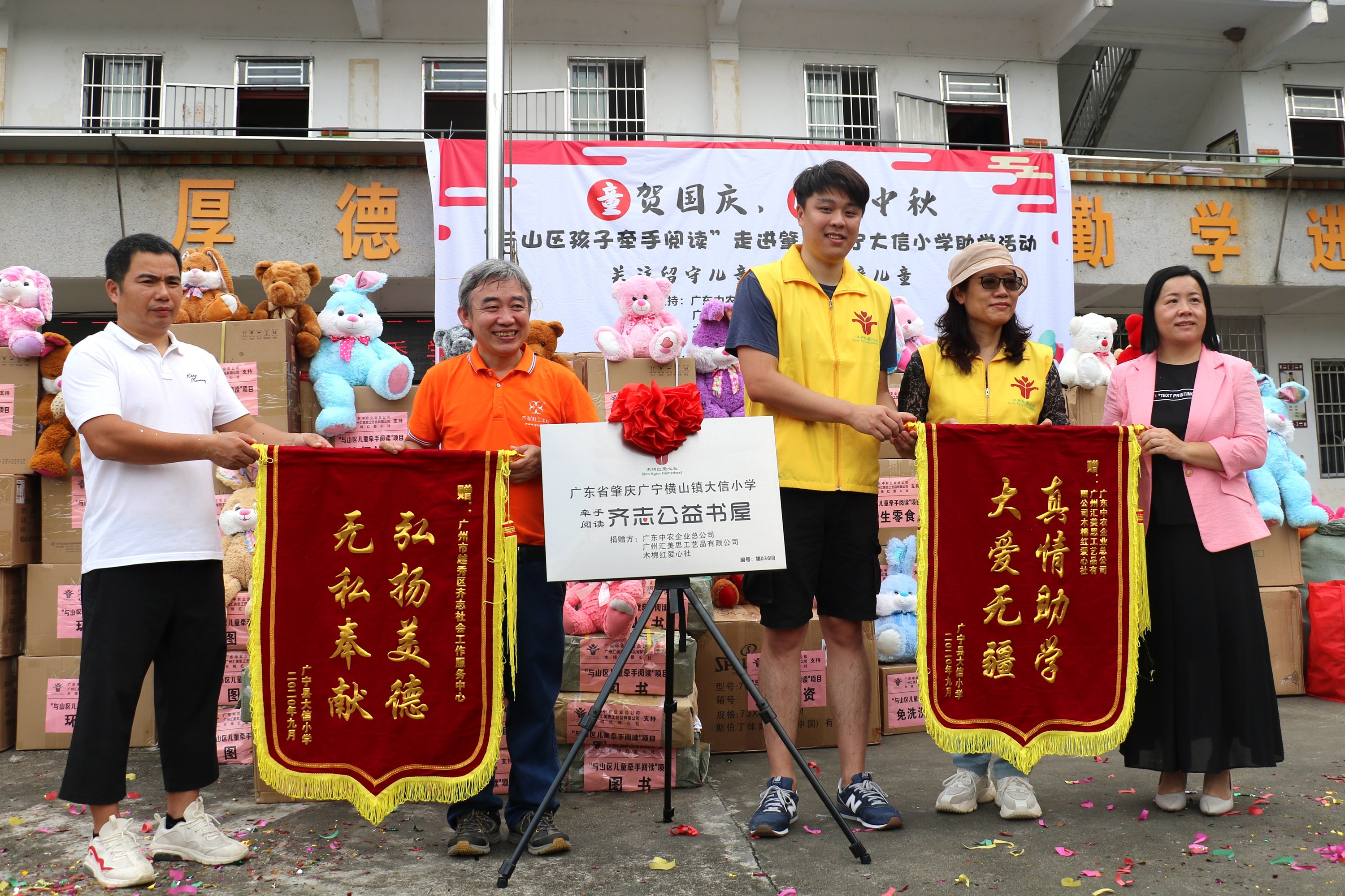 2020年9月29日,在国庆中秋佳节即将来临之际,为改善肇庆广宁大信小学学生学习条件,由广东省民政厅指导,广东中农企业总公司、广州汇美思工艺品有限公司、木棉红爱心社支持,广州市越秀区齐志社会工作服务中心承办、广宁县民政局协办的“童贺国庆,阅赏中秋‘与山区儿童牵手阅读’走进肇庆广宁大信小学助学活动”在大信小学开展,第36间“齐志公益书屋”在大信小学顺利揭牌,为学校赠送近千册的图书,阅览桌,毛绒公仔、文具套装、月饼以及音响、壁扇等超过5.2万元的各类捐赠物资。