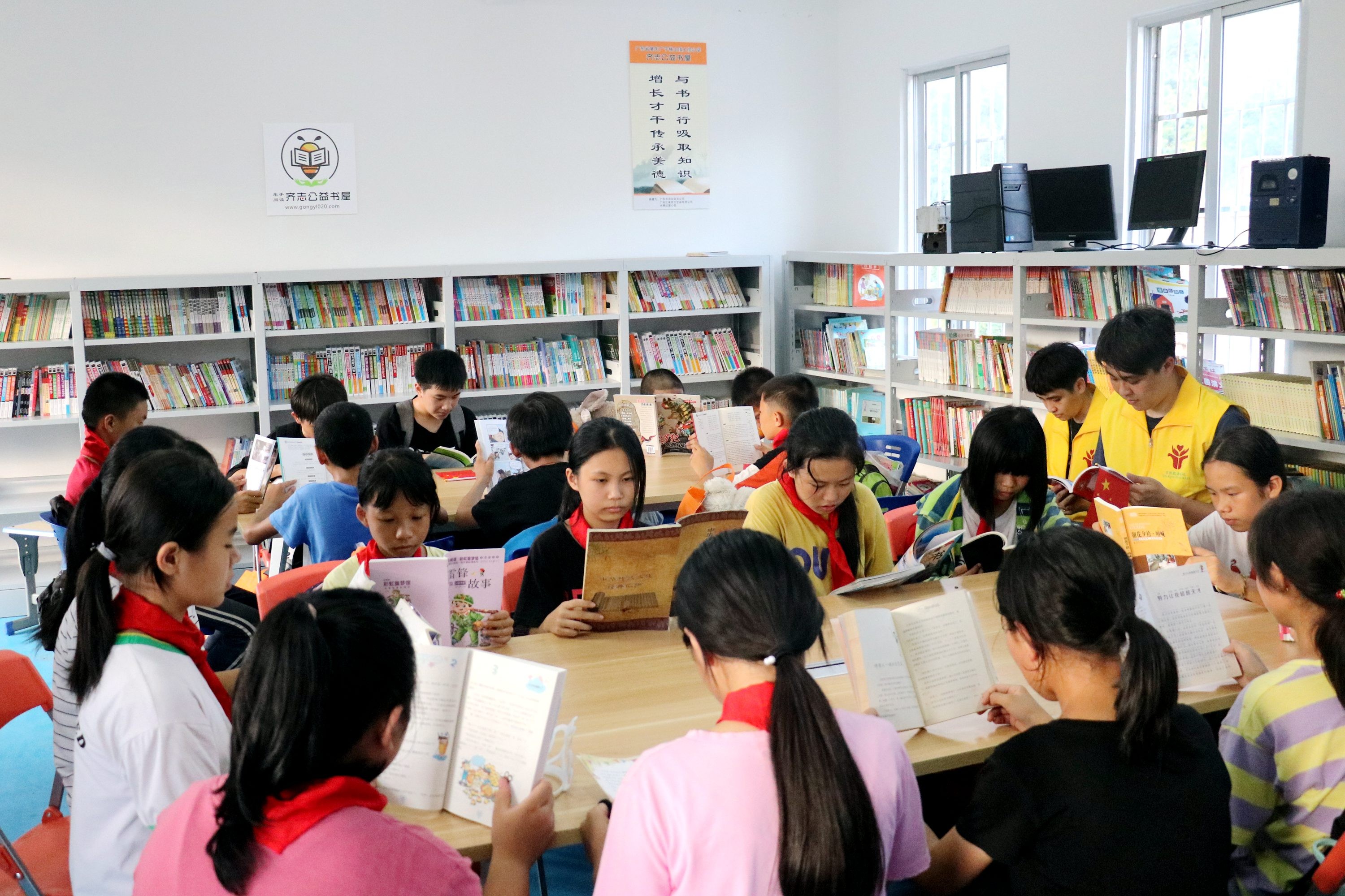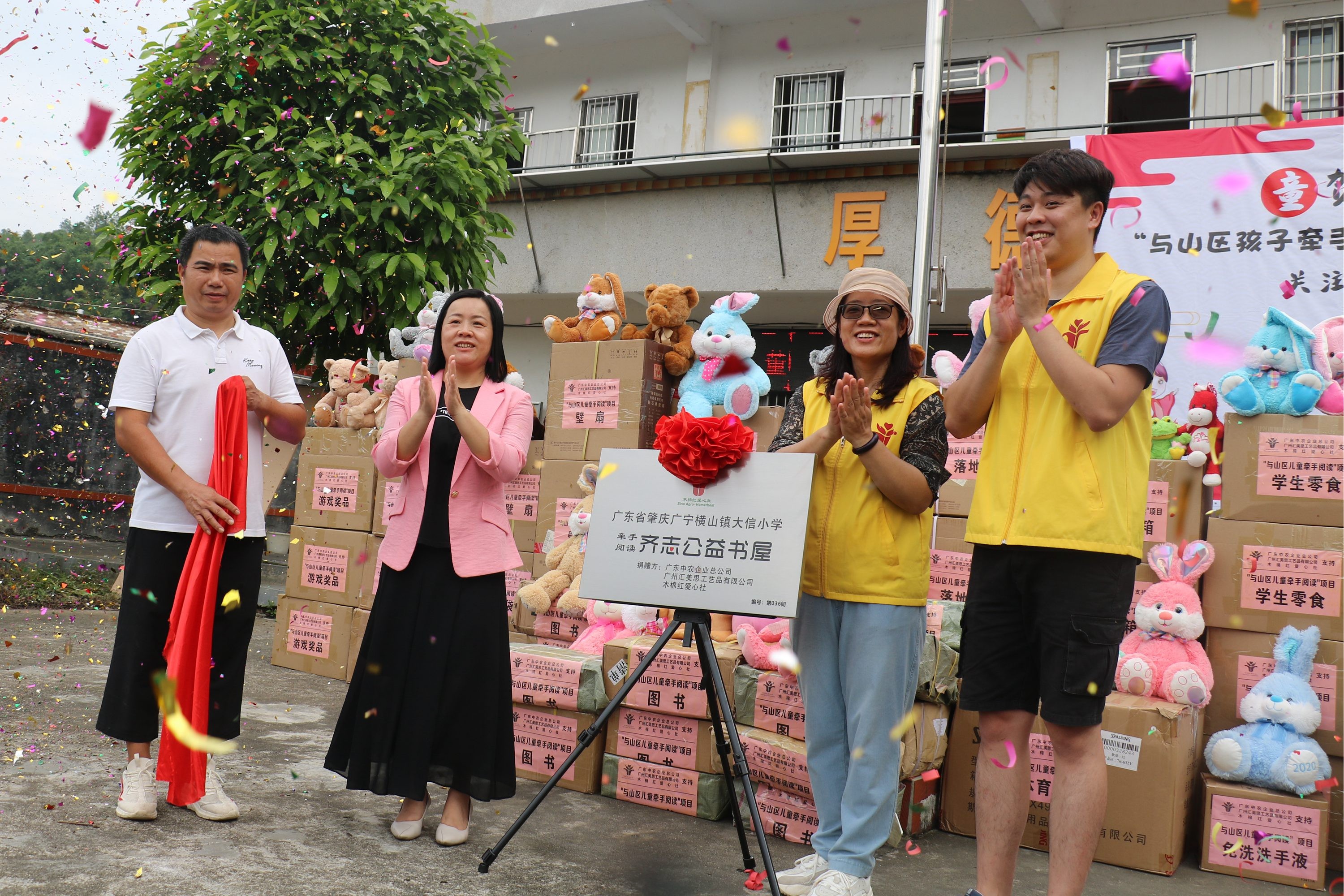 本次活动是为了实施腾讯众筹项目而开展的活动,2019年度99公益日期间,广东中农木棉红爱心社发起企业一起捐,号召旗下员工1116人次的支持齐志社会工作服务中心发起的“与山区儿童牵手阅读”众筹项目,累计获得54409.4元捐赠。第36间“齐志公益书屋”是木棉红爱心社支持的第四间公益书屋,在礼炮和孩子们的热烈的掌声中,木棉红爱心社负责人方旭、徐放与广宁县民政局邓少兰副局长、大信小学董越常校长一起为“齐志公益书屋”揭牌。
