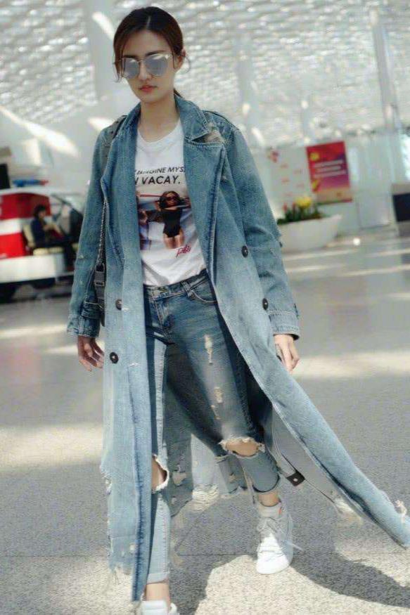 这是机场穿搭,比较复古。这样的搭配感觉不是很好看的,但是每款衣服的设计都是贼棒的。牛仔裤的设计是比较好看的,但是牛仔搭配牛仔就不是很好看了,换一个黑色裤子或者外套肯定会比现在好看的。这套牛仔穿搭是比较类似于西部牛仔的感觉,还是很不错的。