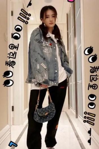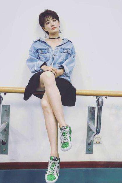 这一套也太显身材了,牛仔外套搭配短裙是比较素雅的。徐璐单穿牛仔外套,是很好看的。徐璐的穿搭真的很大胆,利用牛仔外套的扣子,形成v领设计,设计感满满。黑色的短裙是比较简约的,绿色的运动鞋搭配也太棒了。这样的穿搭是真的很大胆,但是又是很好看的。