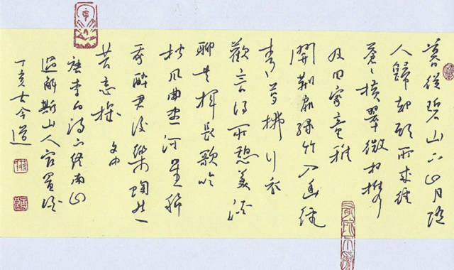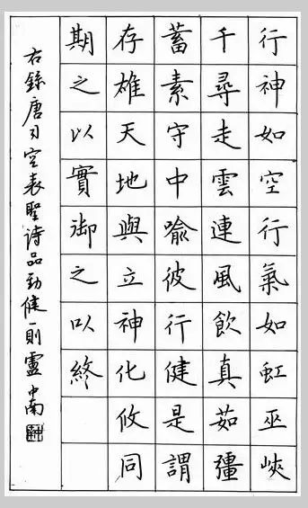 欣赏硬笔书法作品,可以由近而远,即由线条而结体而章法而风格,依次欣赏。正如电影镜头中,由特写而近景,再中景,然后远景或全景一样。这种欣赏法的好处是容易理解和接受,感受较深或全面。