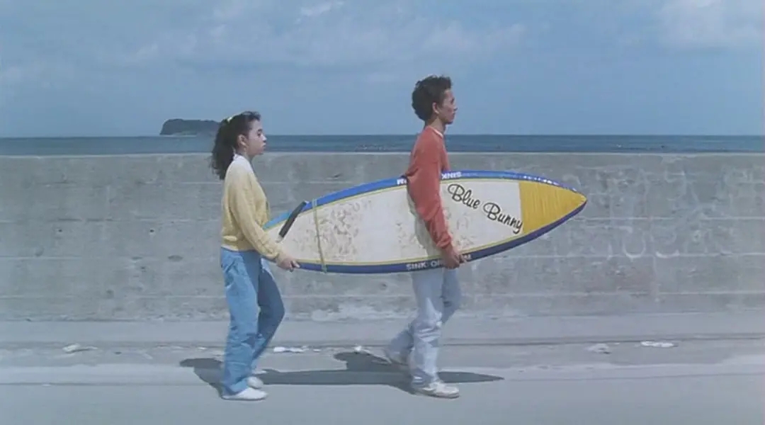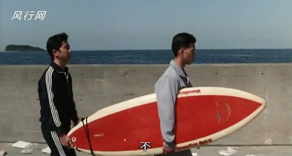 通过设置冲浪的两个小伙子,来造成与茂和贵子的对比,两个小伙伴行走的动作,一前一后,可以看成是对茂和贵子某种程度上的模仿,联想到两人的冲浪梦以及他们追梦过程中的行为,尤其令观众忍俊不禁。