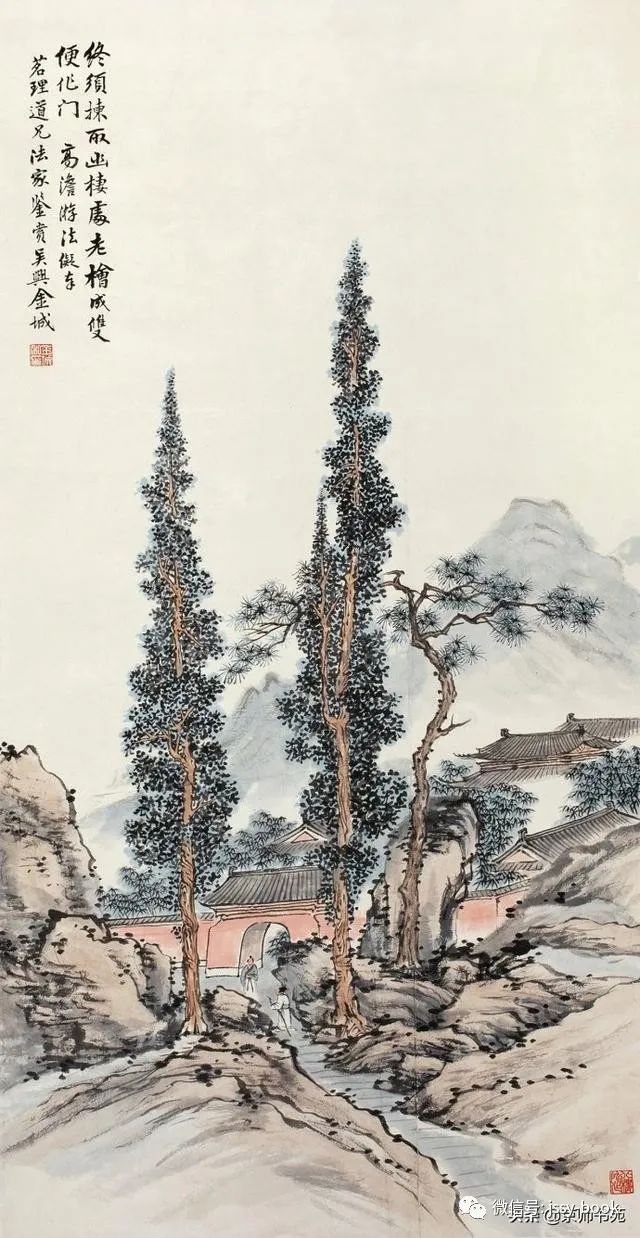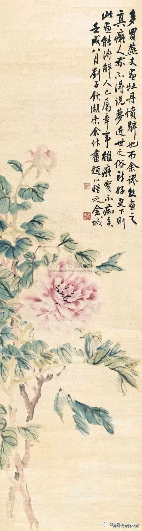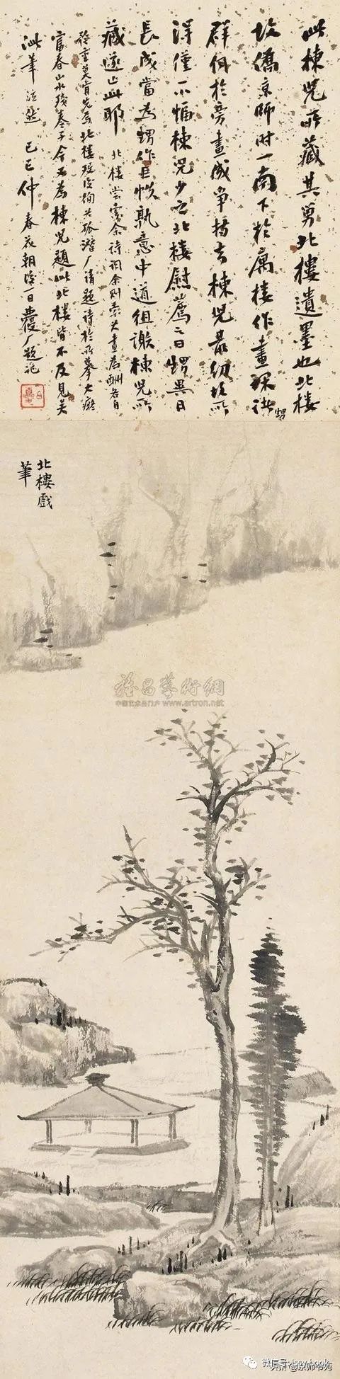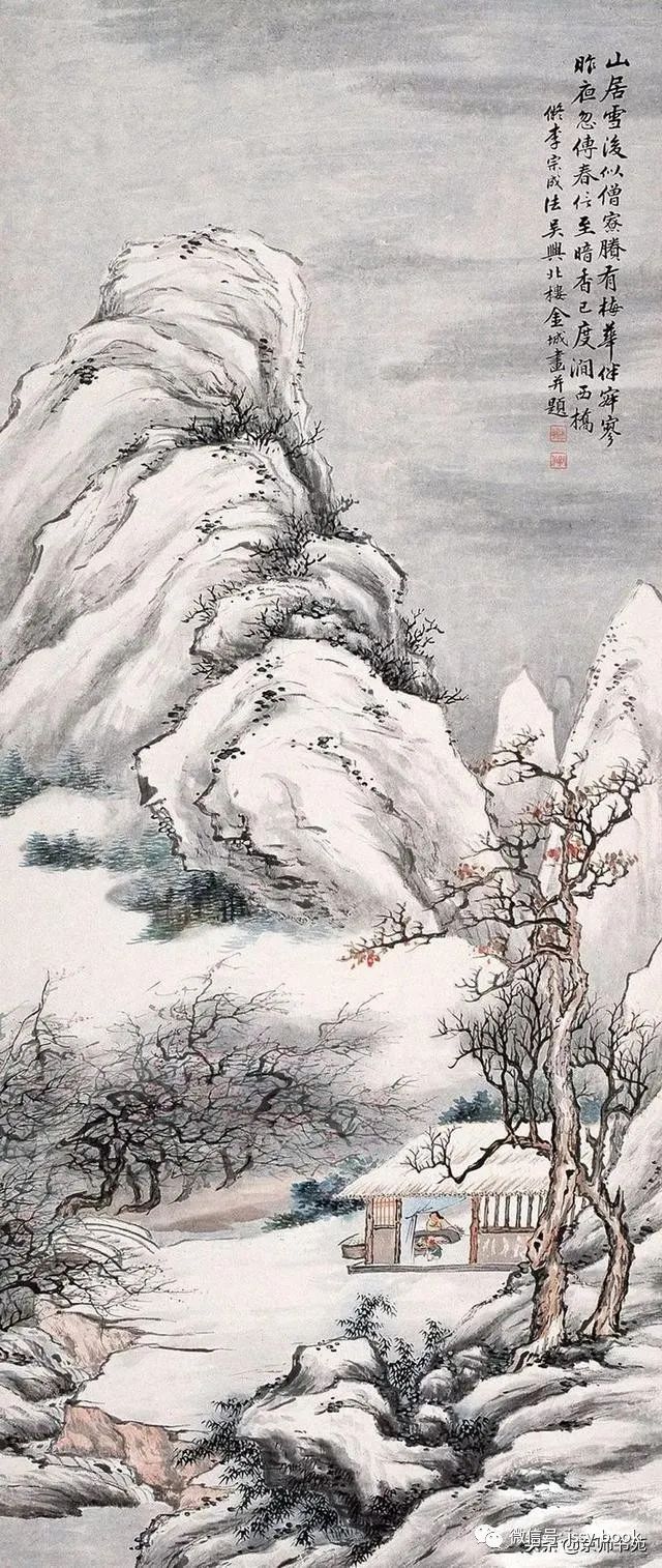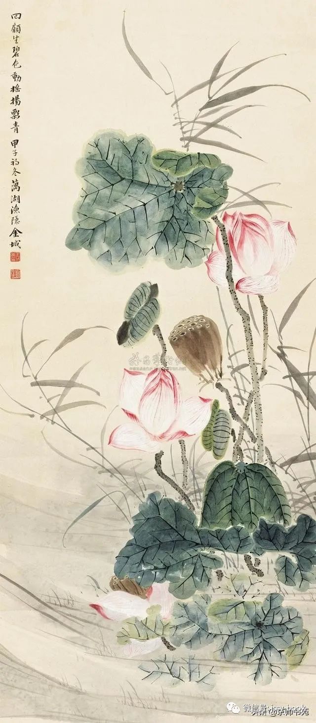 金北楼,名金绍城,字鞏伯,一字拱北,号北楼,又号藕湖,浙江吴兴人,生于光绪戊寅年(1878年)九月。先生博学多才,书画篆刻金石六艺无所不精。山水承继马、夏,人物楷模唐、仇,花卉擅袭 恽田 回之没骨画法。而且在前人基础上有所创新,对传统绘画技法及理论极有研究,为清末民初画坛之巨星。