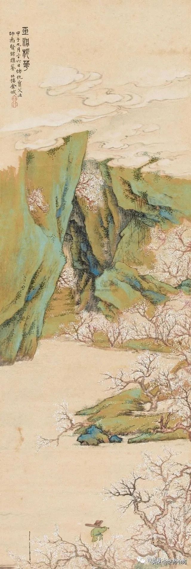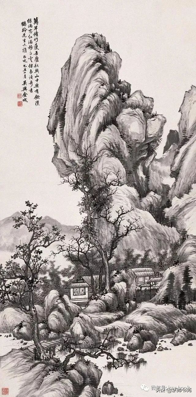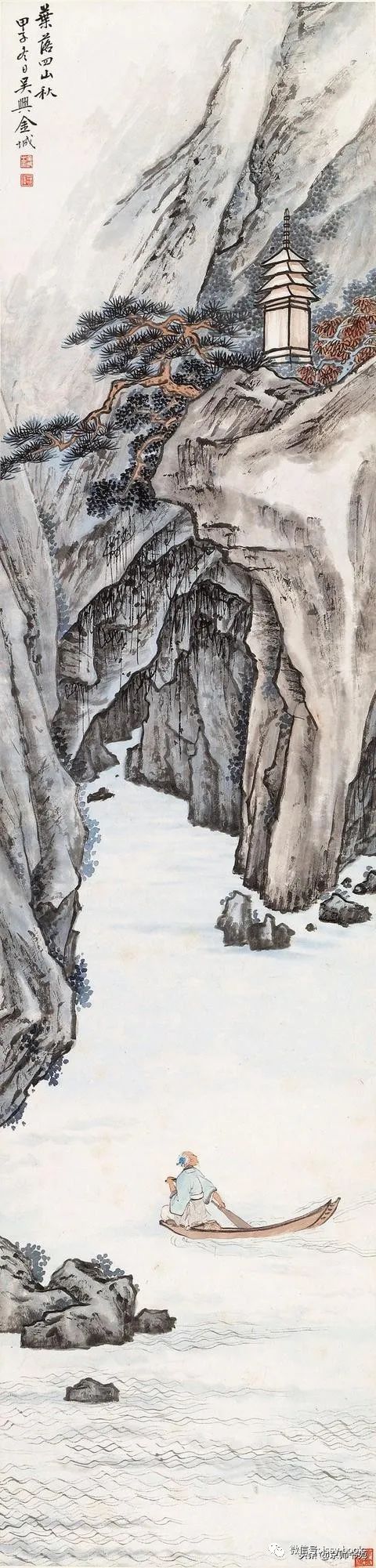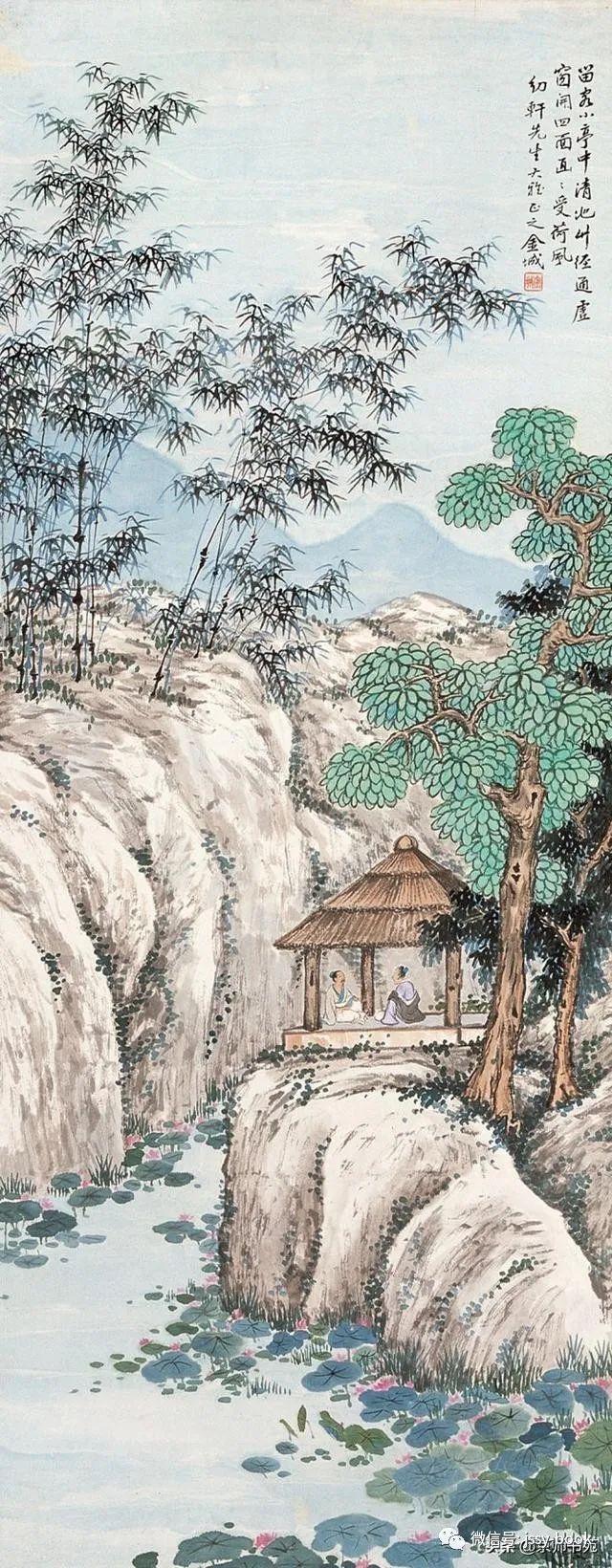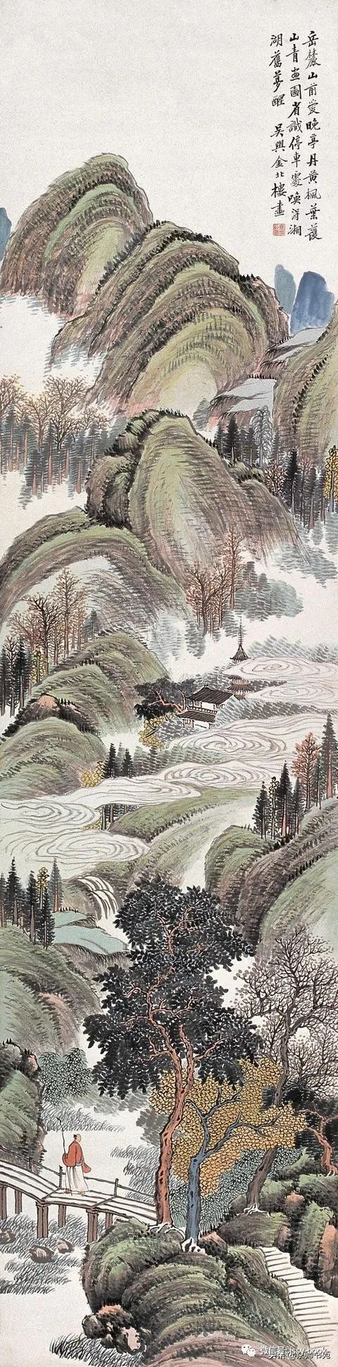 金北楼,名金绍城,字鞏伯,一字拱北,号北楼,又号藕湖,浙江吴兴人,生于光绪戊寅年(1878年)九月。先生博学多才,书画篆刻金石六艺无所不精。山水承继马、夏,人物楷模唐、仇,花卉擅袭 恽田 回之没骨画法。而且在前人基础上有所创新,对传统绘画技法及理论极有研究,为清末民初画坛之巨星。