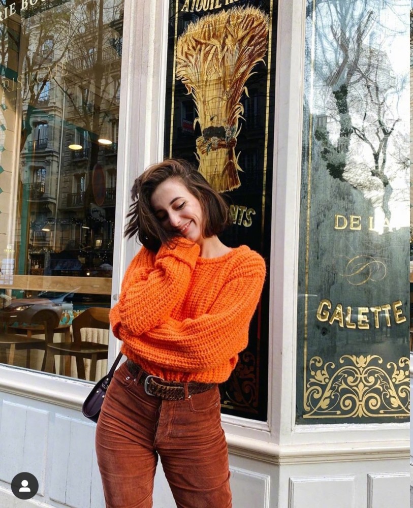 除此以外,这种橙色的针织衫也特别的明媚,非常适合校园风女生穿着,整个人看起来都特别的有活力,激情四射,我们在搭配这种高饱和度色的时候,尽量选择同色系的单品或者是搭配一些黑白灰颜色的单品,不然会给人一种眼花缭乱的感觉,反而拉低整体造型的档次。