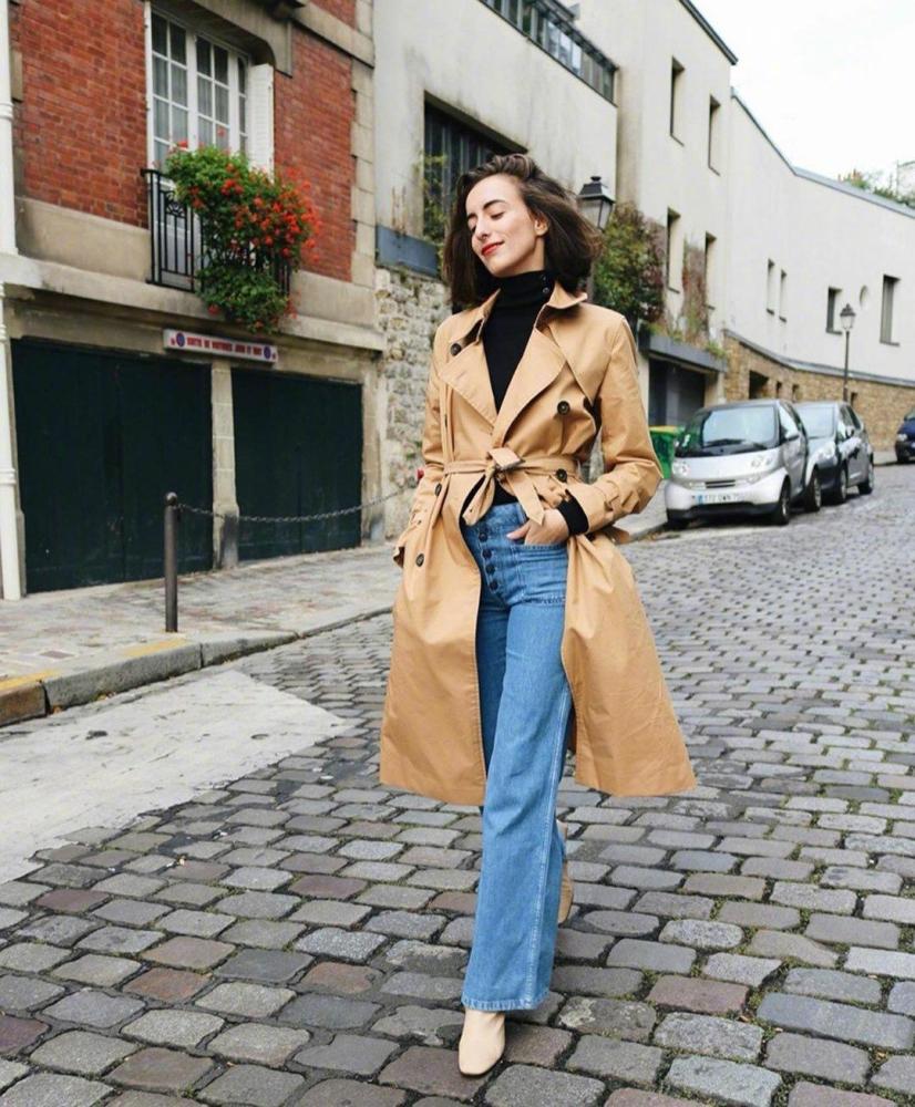 针织衫可以说是法式元素必备,但其实想凹出这种法式的慵懒,风衣也非常的率性和迷人,风衣是我们早秋非常常见的单品,要想将风衣穿的出彩,不仅仅要搭配的好,更要选择对风衣的版型,尤其是这种带有收腰设计的风衣,版型会更加的显瘦显气质,更好的凸显出女性的曲线美。