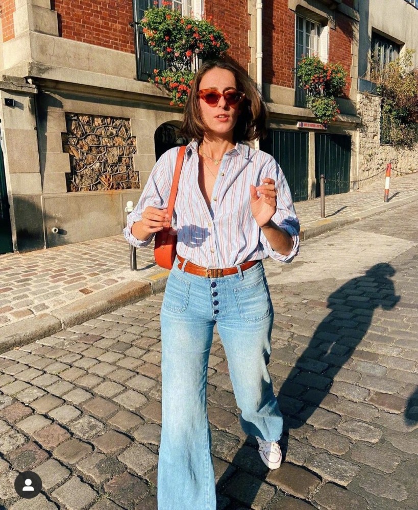 这位博主非常喜欢牛仔单品,她的许多造型都是用牛仔裤来搭配的,牛仔裤不仅穿起来舒适度高,而且非常的百搭,尤其是这种喇叭裤特别的显瘦,对于小腿粗或者是腿型不直的姐妹来说,简直是一级友好!强烈推荐大家在这个夏天一定要尝试一下喇叭裤,又酷又美。