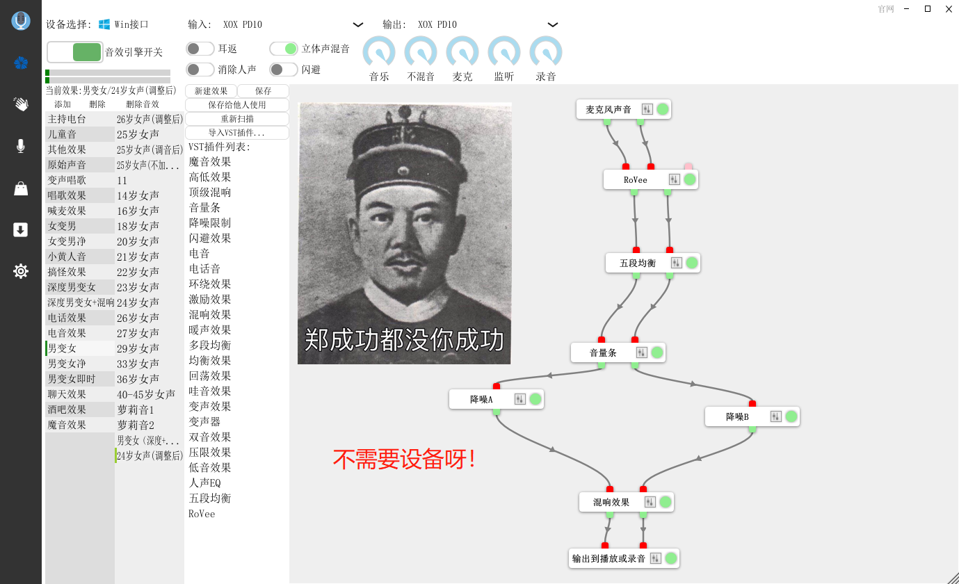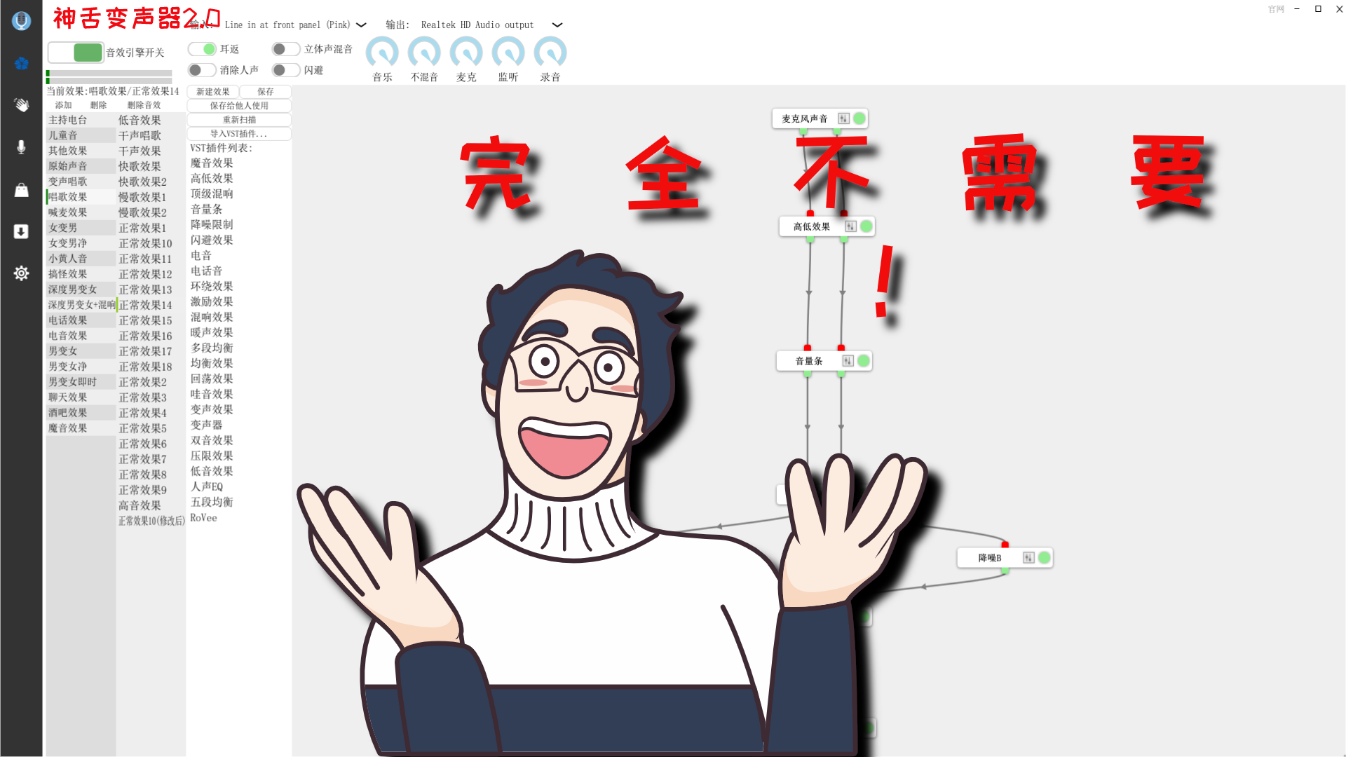 答案是否定的,至少在现在可以被否定了。因为随着新的技术出现,变声软件对于设备的依赖程度正变得越来越低。比如下面这个变声软件已经不需要这两个设备就可以变出高质量的变声效果了。