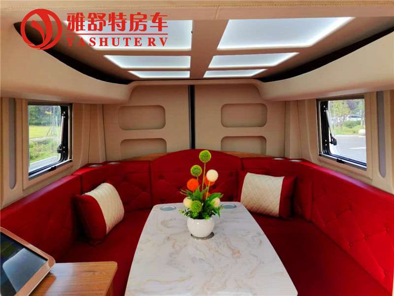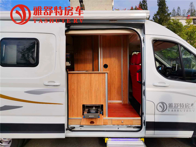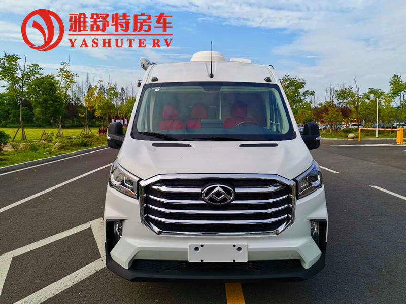 再有上汽大通V90长轴高顶房车在武汉国际车展正式上市,在大通V90房车中门处配有联动踏板,外置抽拉灶,充电口、加水口,驾驶室桃木镶嵌水转印美化,主副驾座椅采用的是1+2形式,亮红色超纤皮软包靓丽奢华。多功能方向盘,大屏幕倒车影像,的确是一辆完美的移动的家。