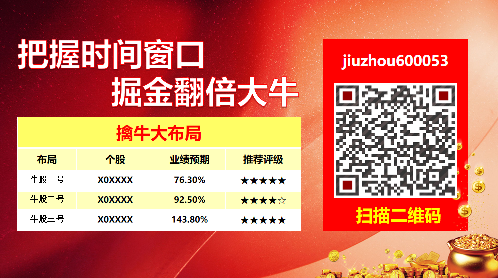 为此,我们通过深度复盘,从以上三大领域中,各精选出1支即将爆发的潜力龙头,今日与大家共享!如果操作中经常错失热点,踏不准节奏,可添加微信【jiuzhou600053】分享每日行情机会,更有机会获得免费一周实战指导,与强者同行!