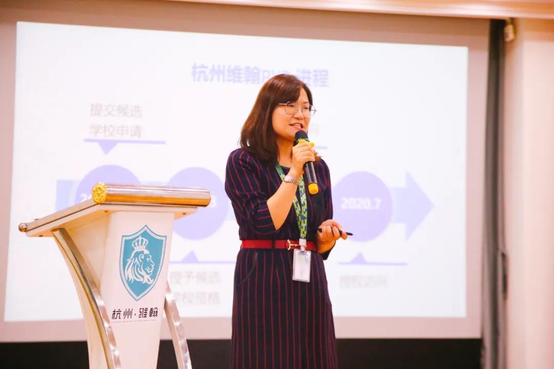 Principal Guodi Yu from Hangzhou Chongwen Experimental School introduced the project-based curriculum at her school and shared its similarity to the IB curriculum.