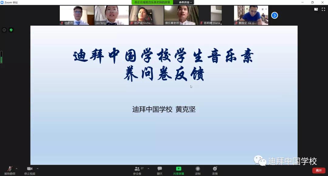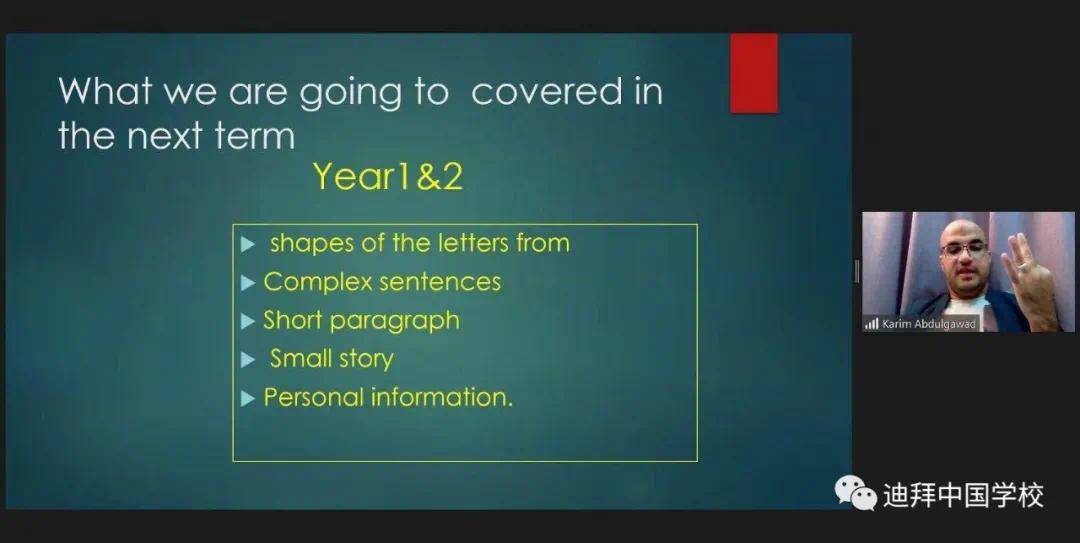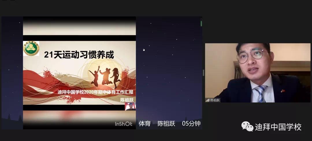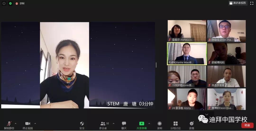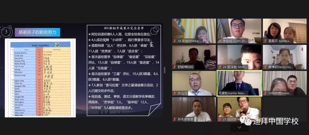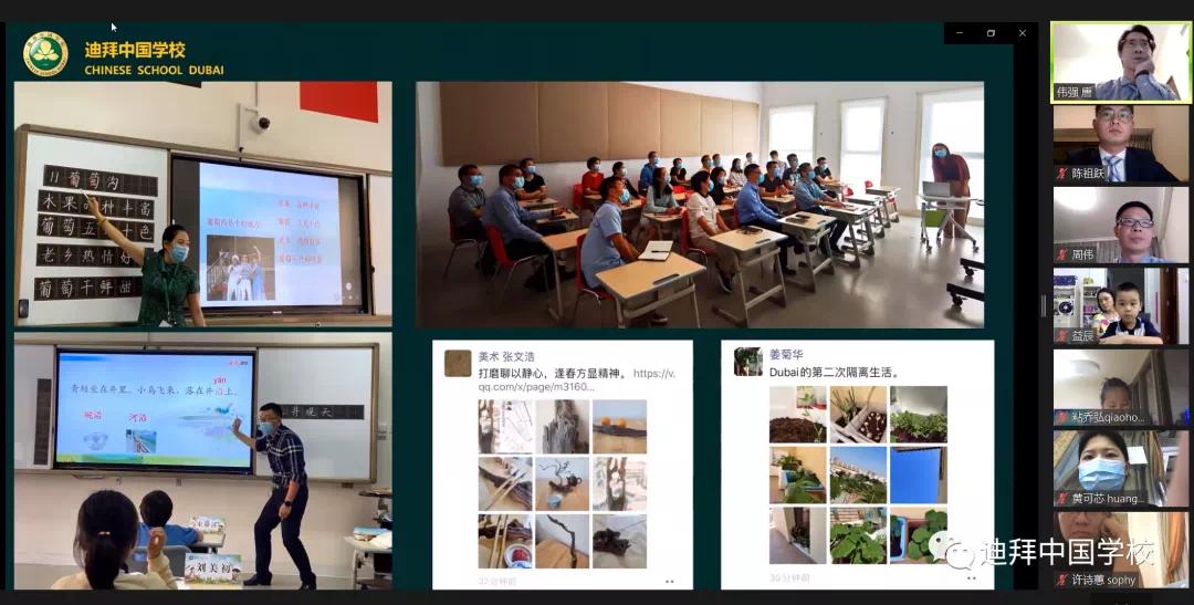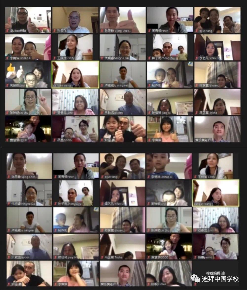 学校尹立平校长通过视频方式从“可爱的学生”、“可信的家长”、“可敬的教师”、“设想与期望”等多角度全面和大家分享了学校开学至今的发展历程,并且提出了学校的未来蓝图与设想。迪拜中国学校的成立再一次证实“沧海横流,方显英雄本色”中华儿女的拼搏精神和英雄本色。