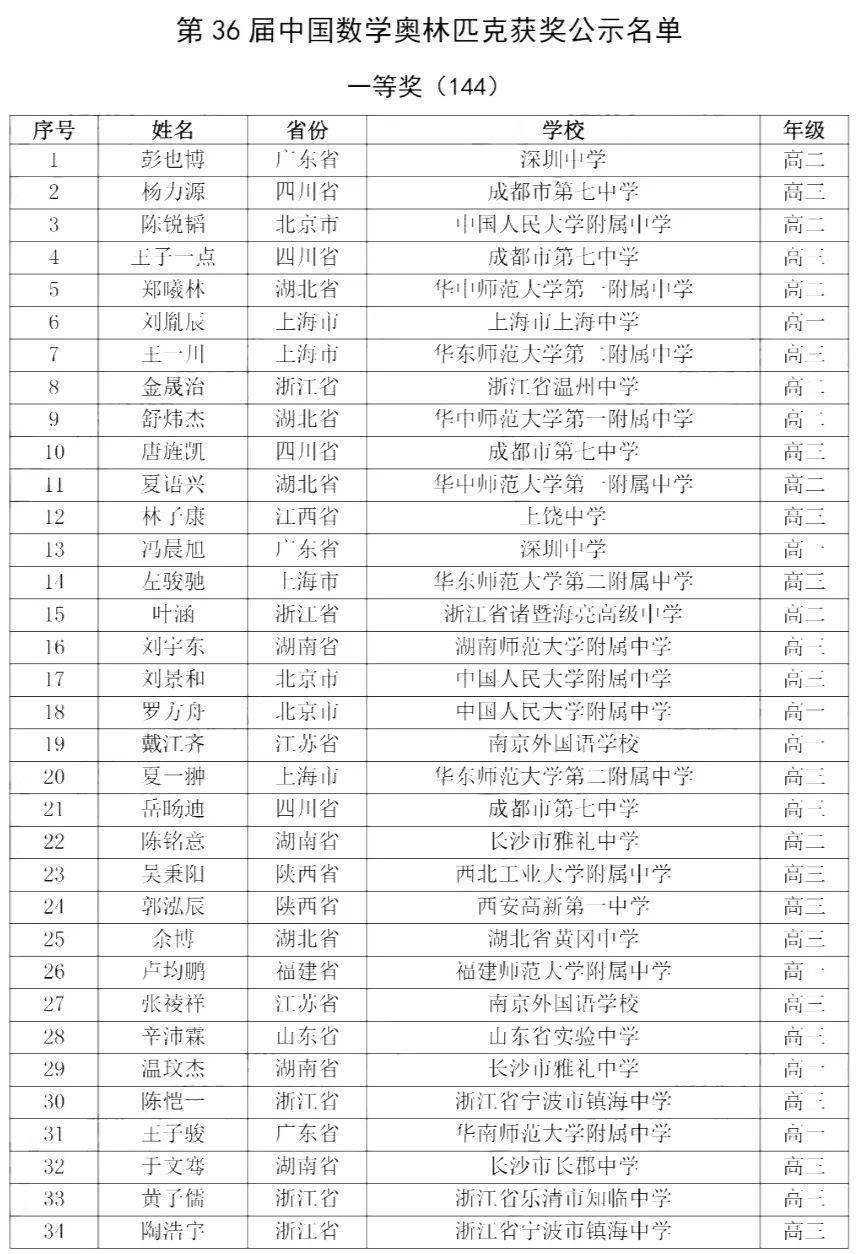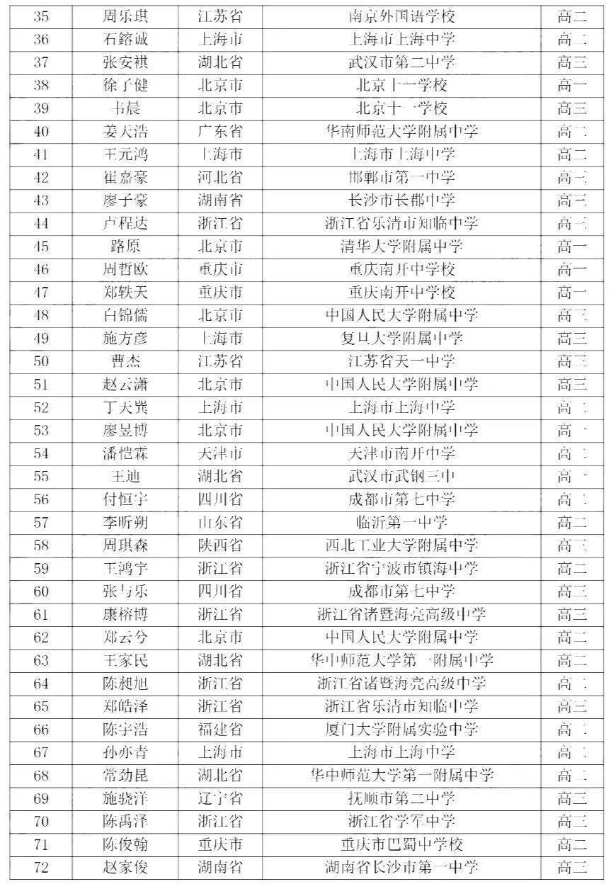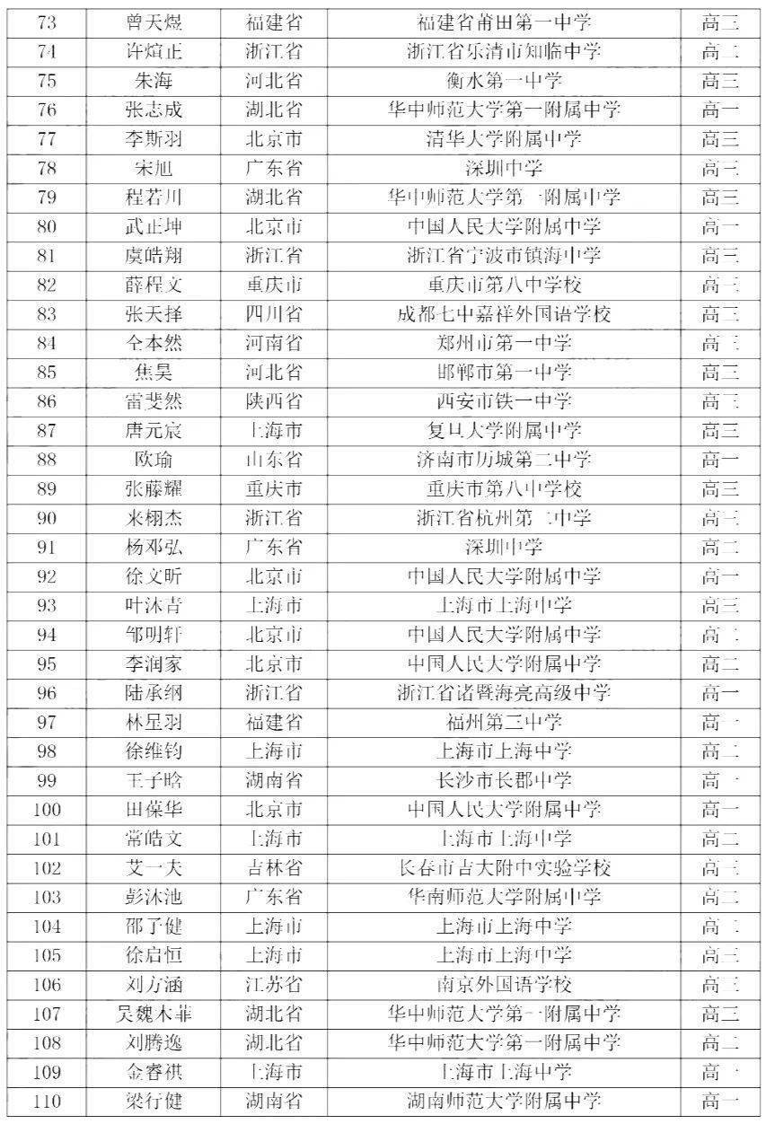 其中,有20位浙江学子获得了本届CMO一等奖,他们分别来自浙江省温州中学、浙江省诸暨海亮高级中学、浙江省宁波市镇海中学、浙江省乐清市知临中学、浙江省学军中学、浙江省杭州第二中学、浙江省浦江中学、浙江省苍南县嘉禾中学。