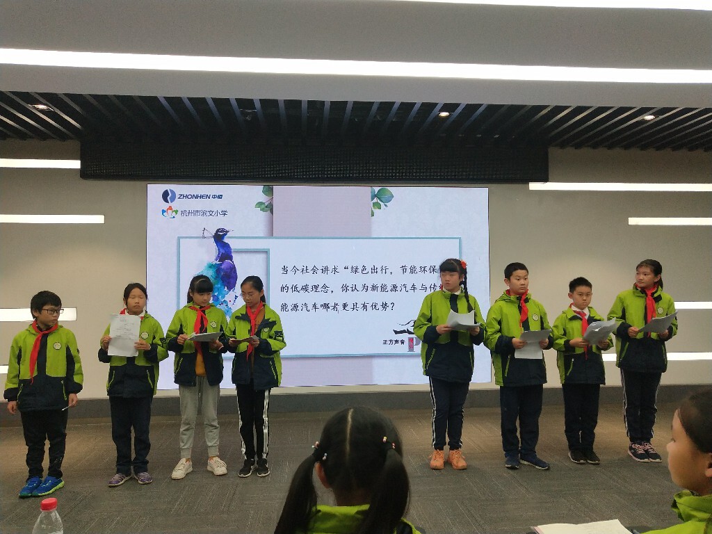 11月20日下午,五年级学生来到中恒电气参观学习。同学们举行了一场“新能源汽车与统能源汽车,谁更有优势”的小型辩论赛,一番唇枪舌战,难分高下,但科技创新的全新理念早已埋在了同学们的心中,连在场的公司员工都为同学们的表现点赞。参观活动,在同学们心里种下了一粒梦想的种子,激发了孩子们对科技探索的渴望。