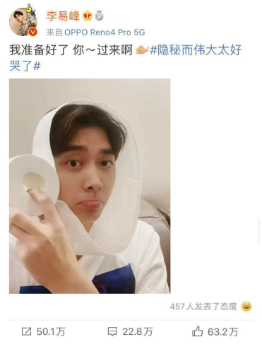 但引人浮想联翩的是,在OPPO Reno5刚刚发布的宣传片中,李易峰、周冬雨、欧阳娜娜等明星都频繁出镜,所以,网友不得不猜测:李易峰这是打算又要换手机了?