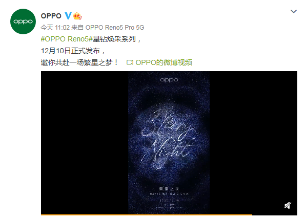 OPPO也已宣布 Reno5系列机型会在12月10日正式发布。
