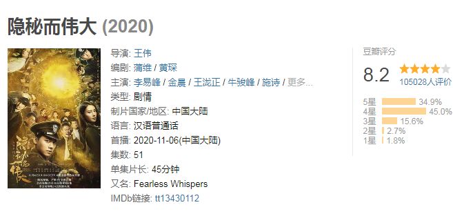 豆瓣评分8.2,在谍战剧中,属实是不低的分数。