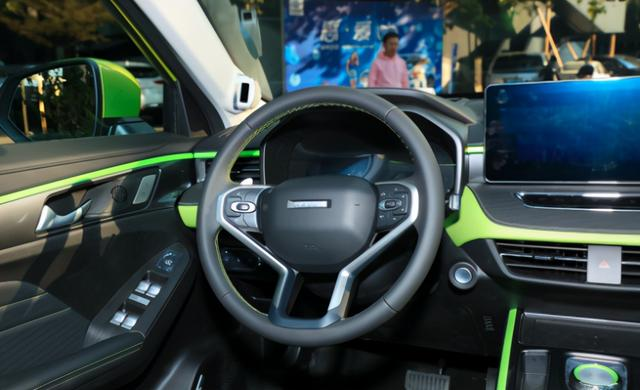 我们可以看到哈弗初恋采用了全新的内饰配色,黑色、米色加上玫瑰金体现简约的小清新风格,另有米色、黑色、绿色,撞色设计和操场绿的车身完美搭配,整体异常和谐。抬头就可以看见三幅式的方向盘,底部镂空的设计加上手感舒适的材质包裹,让驾驶感觉瞬间提升。