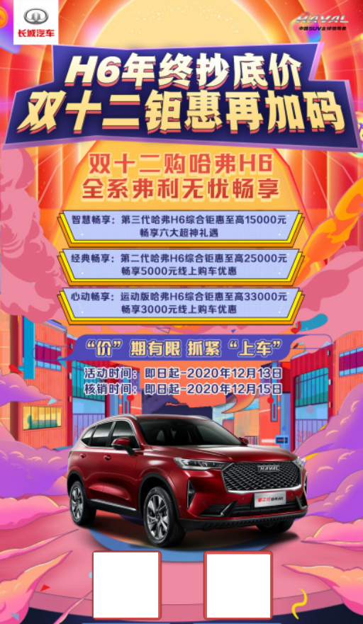 汽车行业的年末销售“大战”已经火热开启,伴着双十二的号角,各种优惠、团购、直播纷纷上线。其中,哈弗品牌携第三代哈弗H6等一众抢眼新车开启年终团购活动,综合钜惠高达3.3万元,可谓非常诱人。